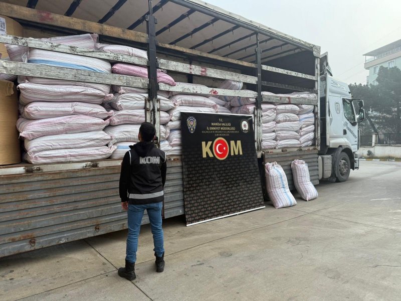 Manisa'nın Turgutlu ilçesinde emniyet ekiplerince 1 tır dolusu kıyılmış tütün ile 850 paket gümrük kaçağı sigara ele geçirildi.