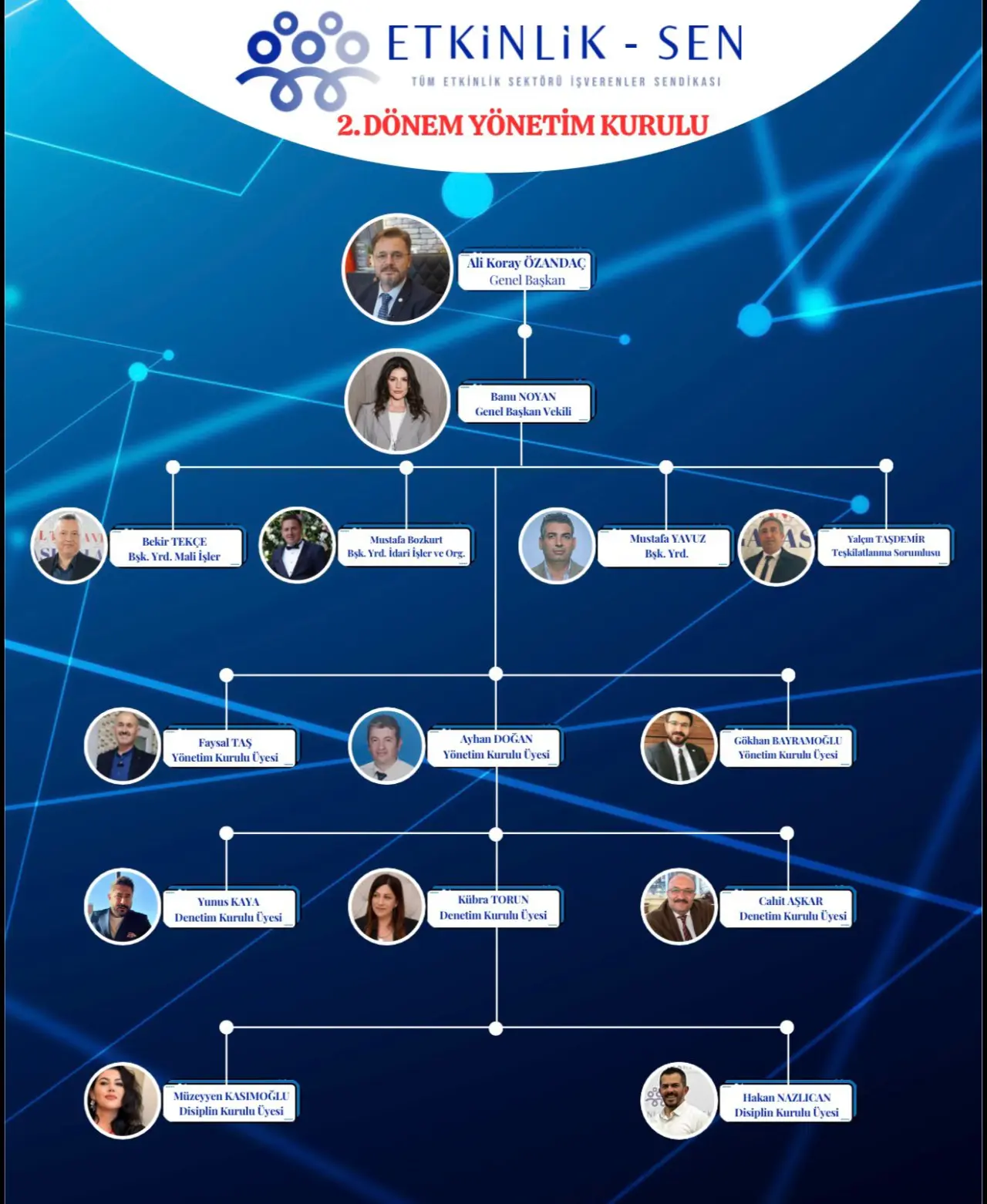 Tüm Etkinlik Sektörü İşveren Sendikası (Etkinlik Sen) Yönetim Kurulu’nda yeni dönem görev dağılımı gerçekleştirildi. Etkinlik Sen Manisa İl Başkanlığı ve Genel Merkez Yönetim Kurulu üyesi görevini yürüten Yalçın Taşdemir yapılan son görev dağılımı kapsamında Etkinlik Sen Genel Başkan Yardımcısı ve Teşkilat Sorumlusu görevine getirildi. Ayrıca Etkinlik Sen Manisa İl Başkanlığı görevine devam edeceği öğrenildi.