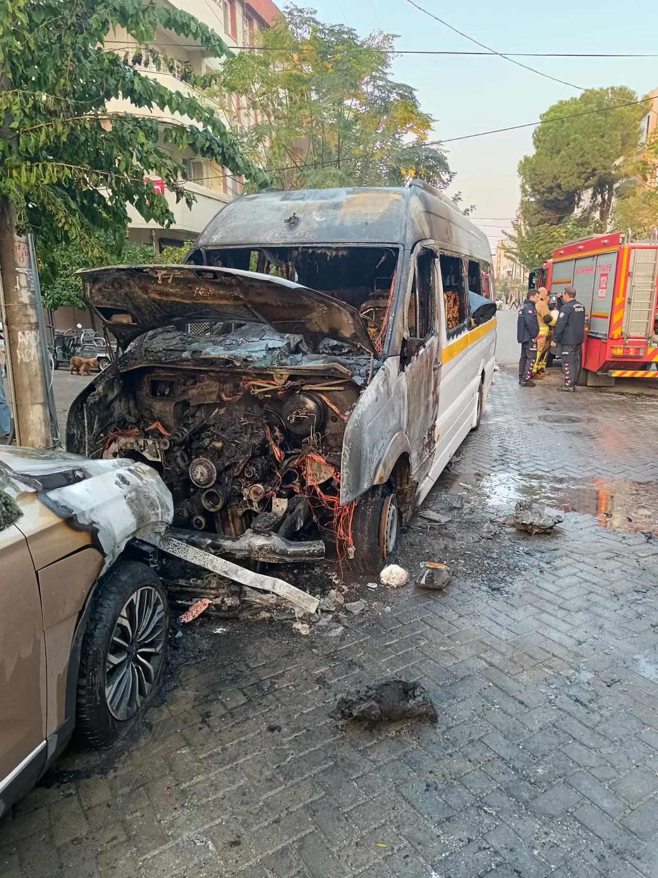 Yangının kısa sürede büyümesi üzerine olay yerine itfaiye, polis ve sağlık ekipleri sevk edildi. İtfaiye ekiplerinin müdahalesiyle yangın kontrol altına alınırken, midibüs ve yakınında park halinde bulunan bir otomobil yanarak kullanılamaz hale geldi.