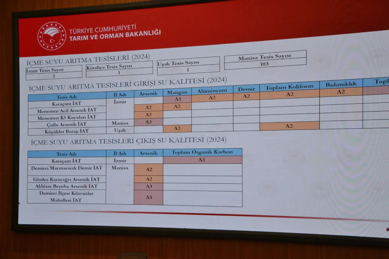 Gültekin, “Gediz Havzamız 17.000 km² alana sahip. Türkiye'nin yaklaşık yüzde 2'sini kaplıyor. Toplam alanın yüzde 64'ünü Manisa, yüzde 12'sini İzmir, sırasıyla Uşak, Kütahya, Denizli, Balıkesir ve Aydın illerinden oluşmakta. Havzamızdaki içme suyu arıtma tesisleri sırasıyla İzmir'de 3 adet, Kütahya'da 1 adet, Uşak'ta 1 adet ve Manisa'da 103 adet içme suyu arıtma tesisimiz bulunmakta. Havza'daki yeri Su suyu kütleleri özelinde sıcak noktalara bakacak olursak buralar miktar ve kalite açısından kütlesi miktar ve kalitesi açısından yoğunlaşılması gereken kütleler” dedi.