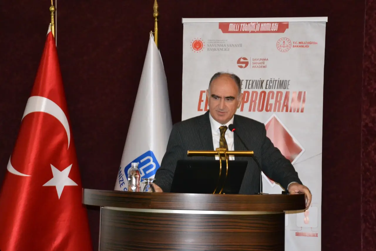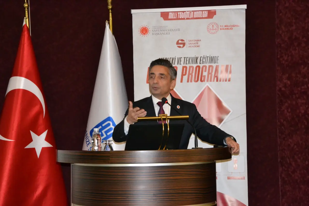 Manisa Valisi Vahdettin Özkan, “Ülkemizin gücüne güç katacak Milli Yetkinlik Hamlesi – ELMAS Programı kapsamında sizlerle bir araya gelmekten büyük bir memnuniyet duyuyorum. Bugün, savunma sanayimizin insan kaynağı altyapısını güçlendirmeye yönelik son derece stratejik bir adımı, önemli bir çalıştay vesilesiyle birlikte değerlendiriyoruz. Milli Eğitim Bakanlığımız ile Savunma Sanayii Başkanlığımızın iş birliğinde yürütülen ELMAS Programı, yalnızca bugünün ihtiyaçlarını değil, yarının teknolojilerine yön verecek insan kaynağını yetiştirmeyi hedeflemektedir. Mesleki ve Teknik Anadolu Liseleri aracılığıyla savunma sanayisine yönelik nitelikli iş gücünün yetiştirilmesi; Öğrencilerimizin teknik ve uygulamalı yetkinliklerinin artırılması, Okul altyapılarının sektörle iş birliği içinde geliştirilmesi, Milli teknoloji üretim kapasitemize katkı sunacak insan kaynağının oluşturulması açısından önemli bir eşiktir. Bu çerçevede, ELMAS Programı; Savunma sanayi ekosisteminin güçlendirilmesine, Yerli ve milli üretim kapasitesinin artırılmasına, Eğitim-özel sektör-kamu iş birliğinin sürdürülebilirliğine doğrudan katkı sağlamaktadır. Bugün 12 ilde 13 seçkin Mesleki ve Teknik Anadolu Lisesi bu programa dahil edilmiştir. Bu kapsamda ‘Manisa Mesleki ve Teknik Anadolu Lisesi’nin de yer alması, şehrimiz için değerlidir. Manisa’mız, savunma sanayisine parça üretimi gerçekleştiren birçok sanayi kuruluşuna ev sahipliği yapmakta, organize sanayi bölgelerinde ülkemizin önde gelen firmaları faaliyet göstermektedir. ELMAS Programı ile bu altyapı daha da güçlenecek; Nitelikli teknik eleman ihtiyacına doğrudan çözüm üretilecek, Okullarımızda yeni atölyeler ve laboratuvarlar kurulacak, yerli ve milli üretim süreçlerine somut katkılar sağlanacaktır” dedi.
