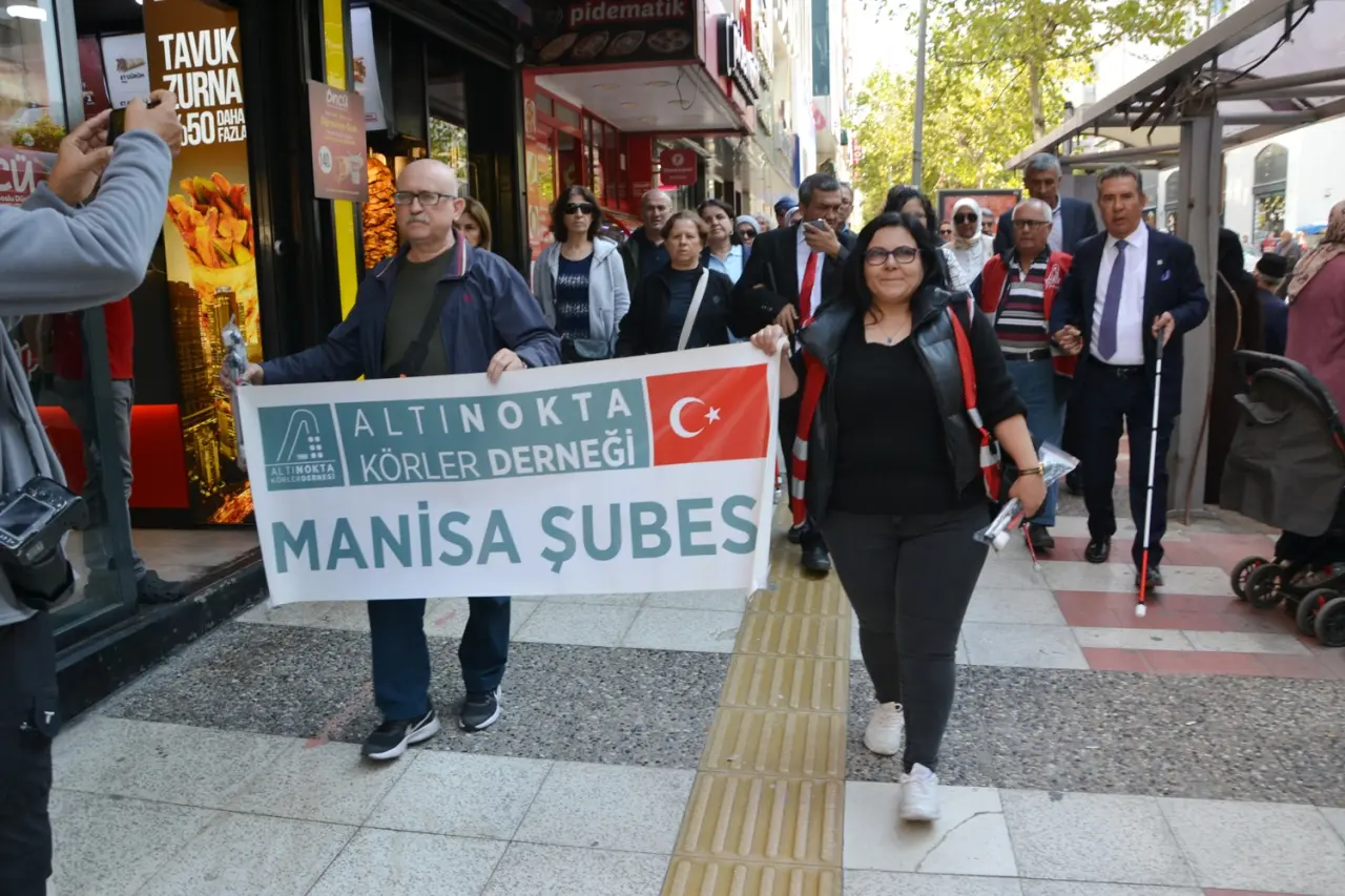 15 Ekim Dünya Beyaz Baston Günü kapsamında Manisa Büyükşehir Belediyesi, Manisa Kent Konseyi, Yunusemre Belediyesi, Şehzadeler Belediyesi ve Altı Nokta Körler Derneği Manisa Şubesi işbirliğiyle Beyaz Bastan yürüyüş etkinliği gerçekleştirildi. Yürüyüşe Manisa Kent Konseyi Başkanı Hakkı Bayraktar, siyasi ve sivil toplum kuruluşu temsilcileri katıldı. Protokol üyeleri görme engellilerle birlikte Cumhuriyet Meydanından 15 Temmuz Demokrasi Meydanına kadar beyaz bastonlarla engellere takıla takıla yürüdüler.