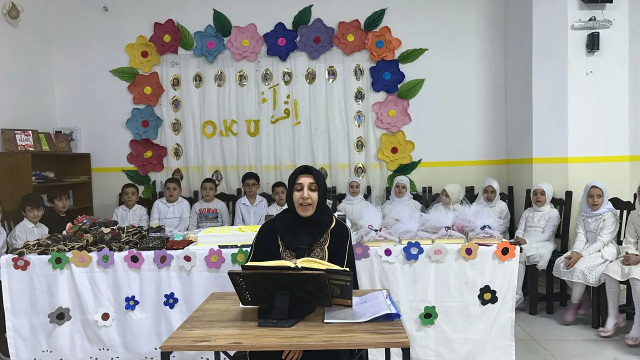Manisa Akgedik Hacı Hamza Güleçyüz 7-10 yaş Kuran Kursu öğrencileri Kuran’ı Kerime geçen öğrencileri için "İkra Oku” adlı etkinliğe imza attı. Etkinlikte kurs hocası Hatice Atay kuran tilaveti ile misafirleri mest etti. Yapılan programda öğrenciler ilahiler okuyarak Kuran’ı Kerim’e geçmenin mutluluğunu yaşadı. Kuran’a geçen öğrenciler ödüllendirilerek kurs öğretmenleri ile birlikte başarılarını kutlamak için pasta kesti. Etkinliğe kurs öğretmenlerinin yanı sıra öğrenciler ve veliler katılım gösterdi.