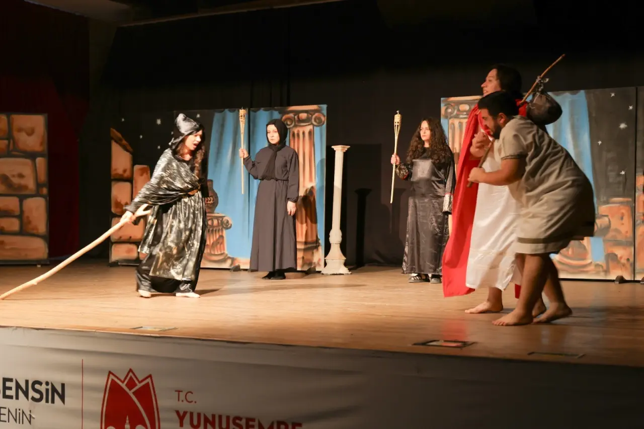 Yunusemre Belediyesi, ekim ayı kültür-sanat etkinlikleri kapsamında Altıeylül Kent Sahnesi’nin Aristophanes’in klasik eseri Kurbağalar’dan uyarladığı "Hades’e Yolculuk" adlı oyunu tiyatro severlerle buluşturdu. Ferdi Zeyrek Millet Çarşısı İsmail Hakkı Tonguç Konferans Salonu’nda sahnelenen oyun, absürt komedi tarzında yeniden yorumlanarak izleyicilere keyifli anlar yaşattı. Kahkahaların eksik olmadığı gösteri, izleyicilerden tam not aldı. Gösteri sonunda tiyatro severler oyuncuları ayakta alkışlarken, Yunusemre Belediye Başkan Yardımcıları Ali Kuyumcu ve Mehmet Mesut Doğan, performanslarından dolayı tüm oyunculara teşekkür ederek plaket takdim etti.