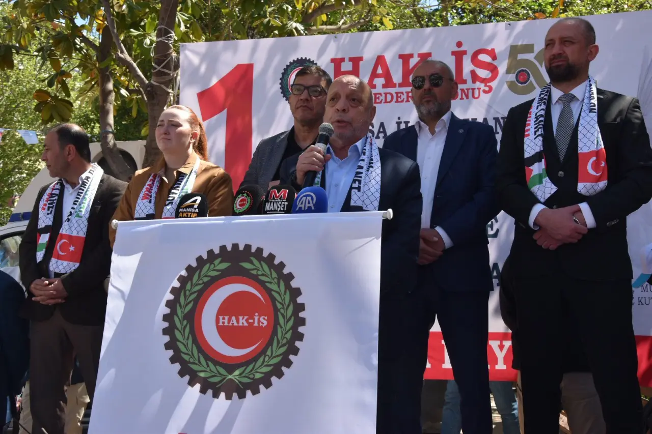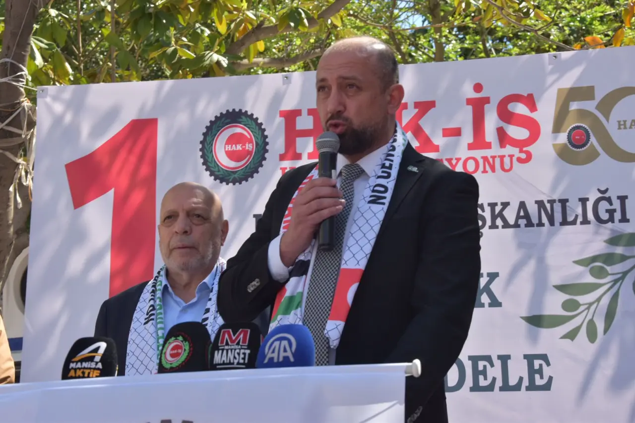 HAK-İŞ Genel Başkanı Mahmut Arslan, 1 Mayıs Uluslararası Birlik, Mücadele ve Dayanışma günü etkinlikleri kapsamında Manisa’da “Adil Ücret ve Refahın Adil Paylaşımı” konulu bir basın açıklaması yaptı. HAK-İŞ’in 1 Mayıs kapsamında Manisa, Elazığ, Sivas, Adana, Ordu ve Bursa’da gerçekleştirecek etkinlik programını paylaşıldı.