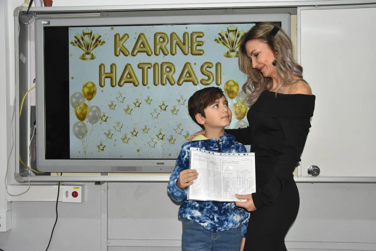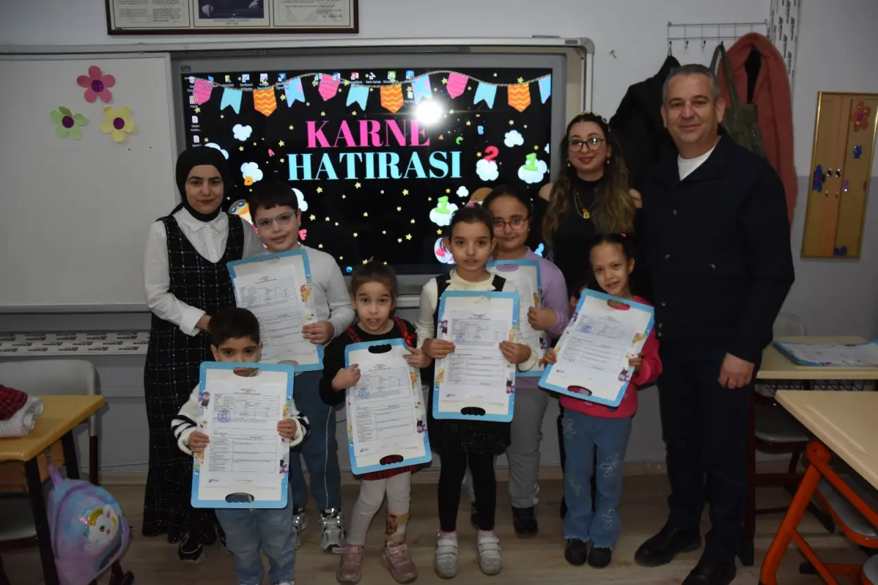 Manisa genelinde 2025-2026 Eğitim Öğretim Yılı’nın birinci dönemi, düzenlenen karne törenleriyle sona erdi. İlk dönemin tamamlanmasıyla birlikte Manisa genelinde öğrenciler karne heyecanı yaşadı. Bu kapsamda Manisa Halil Yurtseven İlkokulu’nda da karne töreni düzenlendi. Öğrencilerin ve velilerin yoğun ilgi gösterdiği törende, öğrencilere karneleri dağıtılarak yarıyıl tatiline uğurlandı.
