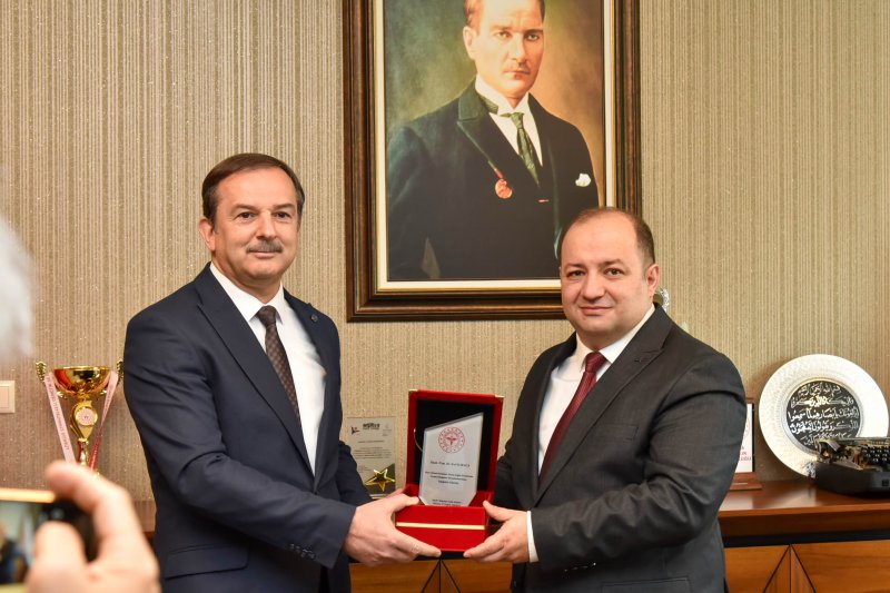 İl Sağlık Müdürü Op. Dr. Mehmet Fatih Zeren, görevi süresince ilimize vermiş olduğu hizmetlerden dolayı Op. Dr. Erol Karaca'ya teşekkür ederek günün anısına çiçek ve plaket takdim etti.