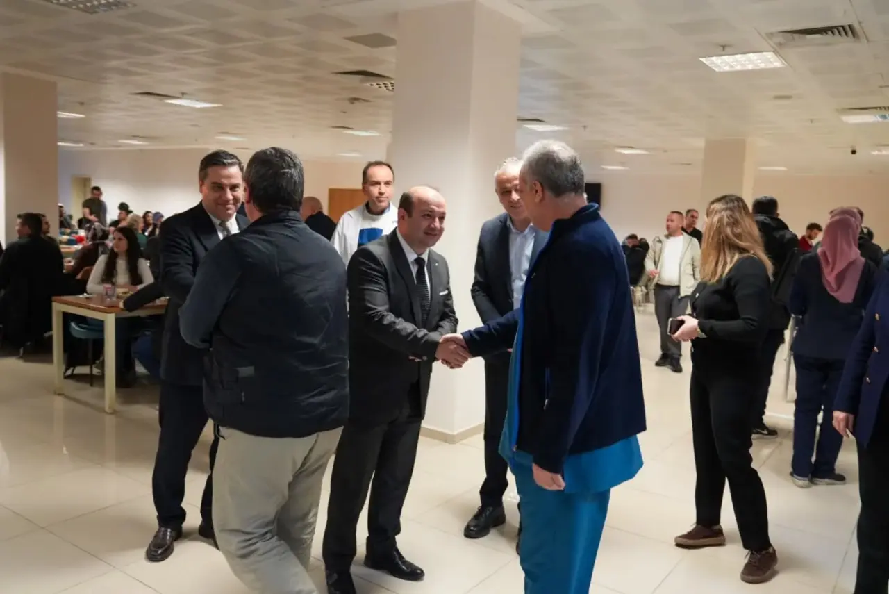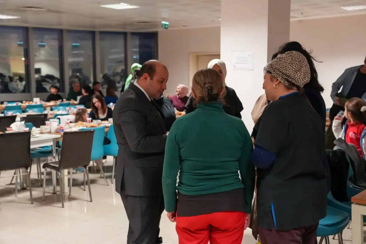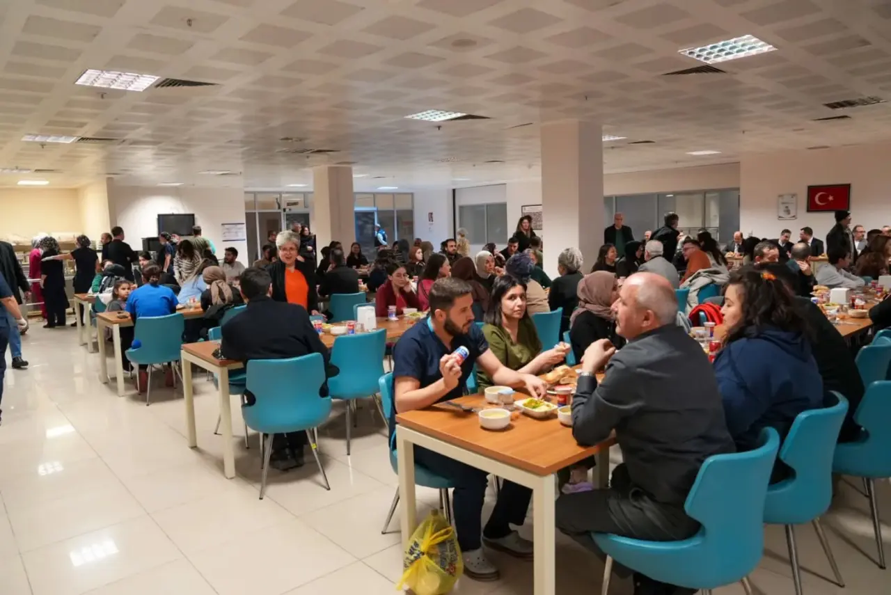 Soma Devlet Hastanesi’nde iftar programı düzenlendi. Manisa İl Sağlık Müdürü Uzm. Dr. Mehmet Fatih Zeren Hizmet Başkanları ve Başkan Yardımcılarıyla birlikte hastanede düzenlenen programa katılarak sağlık çalışanları ve hastane personeliyle birlikte iftar yaptı. Ezanın okunması ile dualar eşliğinde oruçlar açılırken program sonunda Müdür Zeren sağlık personelleriyle bir araya gelerek sohbet etti. Özverili çalışmalarından dolayı hastane personeline teşekkürlerini ileten Zeren dayanışma ve kardeşlik vurgusunda bulundu. Program ilahi dinletisi ve hatıra fotoğrafının çekilmesi ile son buldu.