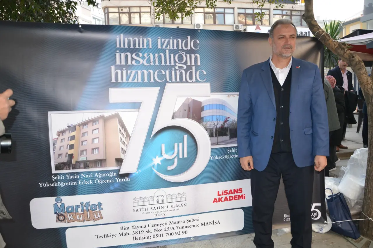 İlim Yayma Cemiyeti Manisa Şube Başkanı Recep Özgüvenç, “Üç ayların rahmet ve bereket gölgesi üzerimize vurmuş durumda. Bu vesileyle hem halkımızın duyarlılığını arttırmak, hem bilim seviyesini yükseltmek için bu manevi atmosferi halkımızın yaşayacağı o güzel günleri halkımıza duyurmak ve müjdeleme Amacıyla bugün bulgur pilavı ve üzüm hoşafı hayrı yapıyoruz. Rabbim inşallah hayırlarımızı kabul, makbul eylesin. Malum üç aylar içerisinde rahmet ve bereketi barındıran, içerisinde Regaip Kandilinin, Beraat Gecesi'nin ve bin geceden daha hayırlı olan Kadir Gecesi'ni barındıran mübarek aylardır. Bu aylarda rahmet ve mağfiret, sağanak sağanak üzerimize yağdığı aylardır. Bu vesileyle biz de İlim Cemiyeti'nin kuruluşunun 75. yılında halkımıza bu rahmet aylarının yaklaştığını vurgulamak ve onlara bir hatırlatmada bulunmak amacıyla bu hayret Etkinliğimizi yapıyoruz. Katkı sağlayan herkese teşekkür ediyoruz.” dedi.