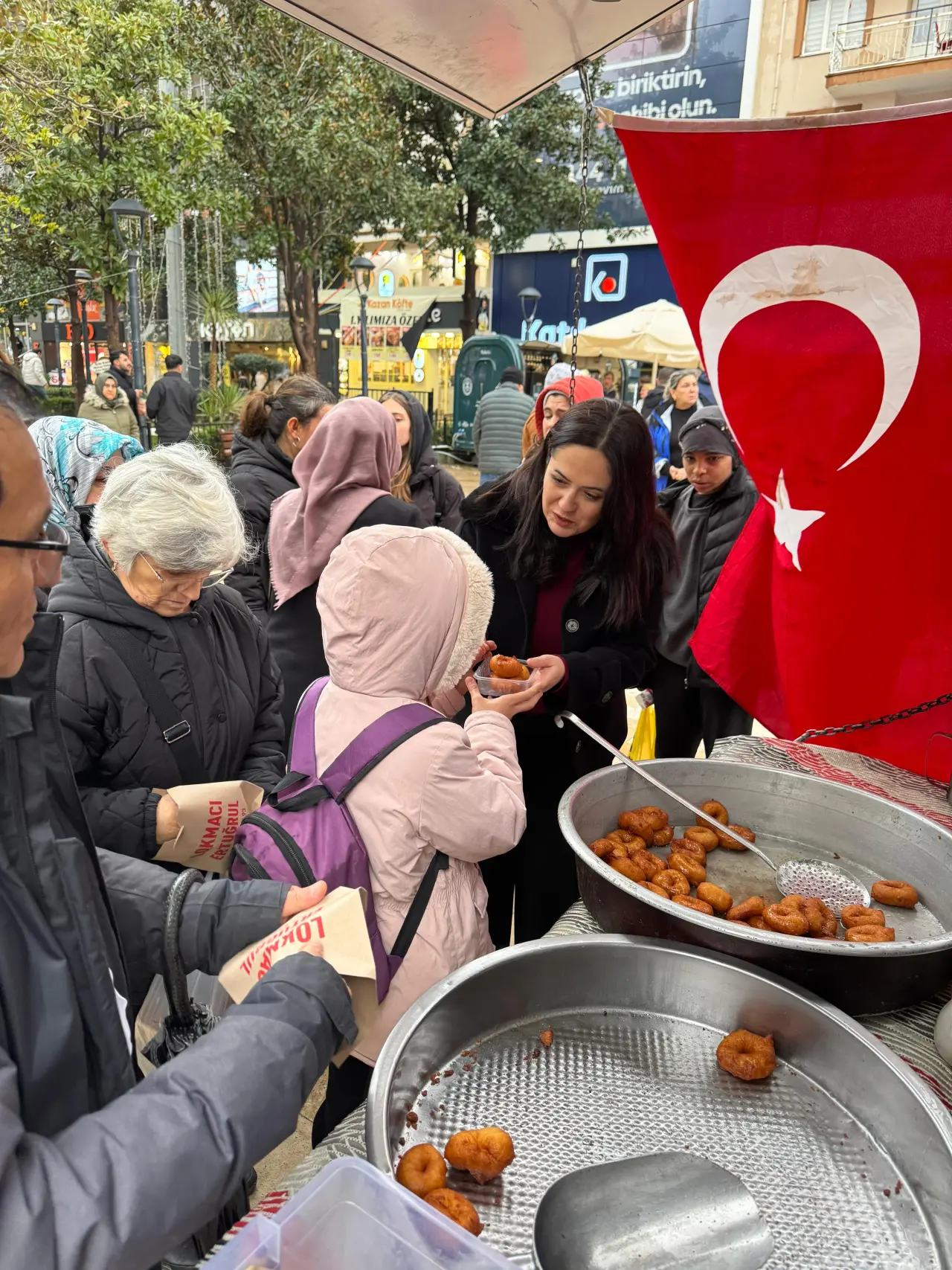 15 Temmuz Şehitleri Meydanında gerçekleştirilen hayırda İYİ Parti Şehzadeler İlçe Başkanı Gözde Aytaç vatandaşların kandilini kutlayarak, lokma ikramında bulundu.