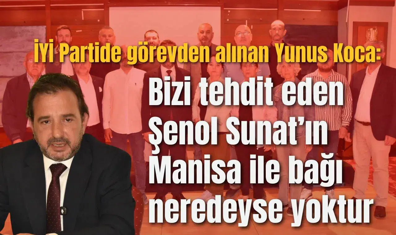 Koca ayrıca kongre sürecinde tehditler ve baskılar yaşandığını iddia ederek, bazı ilçe başkanlarının görevden alınmakla tehdit edildiğini öne sürerek, “2023 seçimlerinde o dönem Ankara Milletvekili olan Şenol Sunat'ın Manisa'ya gönderilmesi ve teşkilatın görüşü alınmadan aday yapılması sürecinde tüm itirazlarımıza rağmen kendisini Manisa halkına anlatmak için büyük çaba gösterdik. Şenol hanım kontenjan ile Manisa'ya atanmış olmasaydı Manisa İYİ Parti'den iki tane milletvekili çıkartacaktı. İl kongre sürecinde partimize uzun yıllar emek vermiş Erhan Dumlu, Ali İksir, ilçe başkanlarımız ve onların teşkilatlarına dikte edercesine ‘seçilmiş olsanız dahi bizi desteklemezseniz sizi teker teker görevden alacağız’ diye Şenol Sunat tarafından tehditler yapılmıştır. Kaldı ki il başkanlığımız içinde aynı tehditler söz konusudur. Böylelikle Şenol Sunat birlik ve beraberliğe zarar vermiş, kongre sürecinin sağlıklı ilerlemesini engellemiştir.”ifadelerini kullandı.