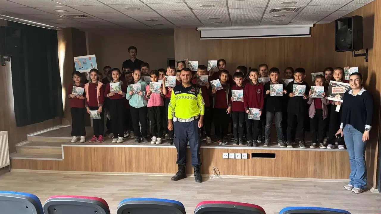 10.00-12.00 saatleri arasında gerçekleştirilen eğitimde 35 öğrenciye; yayaların, yolcuların ve sürücülerin uyması gereken temel trafik kuralları, emniyet kemeri ve kask kullanımı ile yaya önceliği konularında bilgilendirme yapıldı.