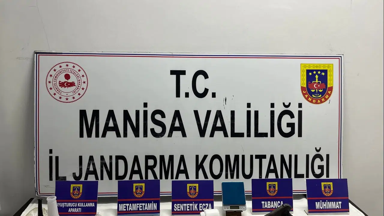 Soma İlçe Jandarma Komutanlığınca uyuşturucu madde ticareti ile mücadele kapsamında yürütülen faaliyetler neticesinde, Ö.F.A. (26) isimli şahsın ikametinde yapılan aramada, 42 adet sentetik hap, 2 gram uyuşturucu, 1 adet hassas terazi, 5 adet uyuşturucu kullanma aparatı, 1 adet tabanca ele geçirildi. Olayla ilgili Cumhuriyet Savcısının talimatıyla tahkikata başlanırken, şüpheli Ö.F.A. adli makamlara sevk edilmek üzere gözaltına alındı.