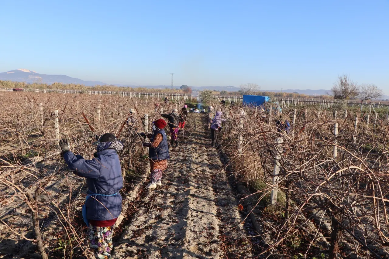 Manisa Ovası’nda çalışana her zaman iş olduğunu vurgulayan Asiye Abla, ekibiyle birlikte yılın 12 ayı farklı işlerde çalıştıklarını belirtiyor. Kış aylarındaki yağışsız günler genelde bağ budamasıyla geçiyor, bahar aylarında işler yoğunlaşıyor. Sebze dikimi; pamuk, mısır, domates ve biber çapası, taze asma yaprağı toplama bahar mevsiminin işleri. Yaz aylarıyla birlikte bağ bozumu, sonbaharda zeytin hasadı başlıyor. Bu iki iş aylar alıyor.