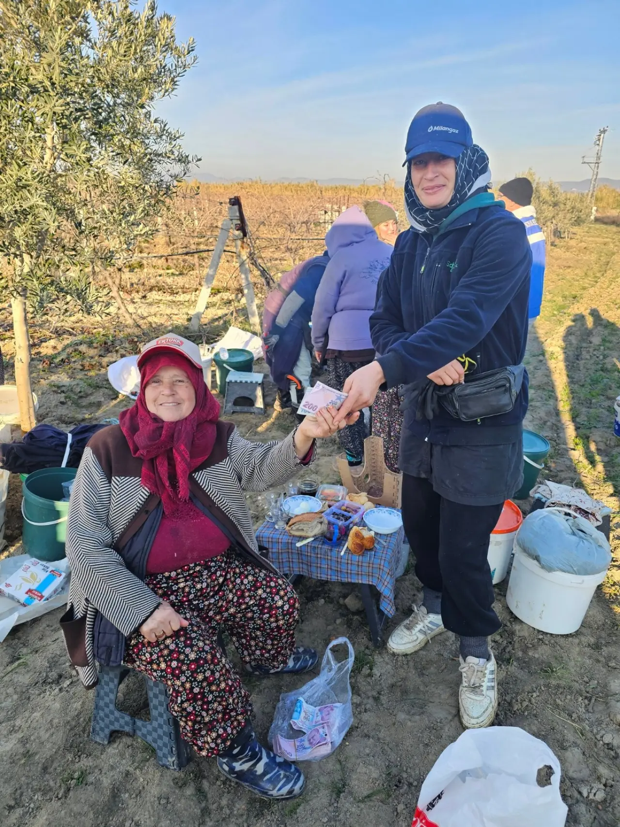 Asiye Abla’nın çalışma arkadaşları da onun gibi çalışkan ve sevgi dolu. İşçileri, “Asiye Abla bizden dayıbaşı ücreti kesmiyor. Onun sayesinde yılın 12 ayı işimiz oluyor. Ekmek paramızı kazanıyoruz, aile bütçemize katkı sağlıyoruz. Asiye Abla bizim annemiz gibi, her konuda yanımızda. Allah onu başımızdan eksik etmesin” diyor. Asiye Memiş ve ekibinin son çalıştığı bağın sahibi İskender Güler de kadın ekibinden övgüyle bahsediyor: “Bağ budama işi ağır bir iştir ve erkekler yapar diye bilinir. Ancak Asiye Abla ve kadınlardan oluşan ekibi bu işi çok iyi yapıyor. Ben çok memnun kaldım, bu yıl da budama işini onlara verdim.”