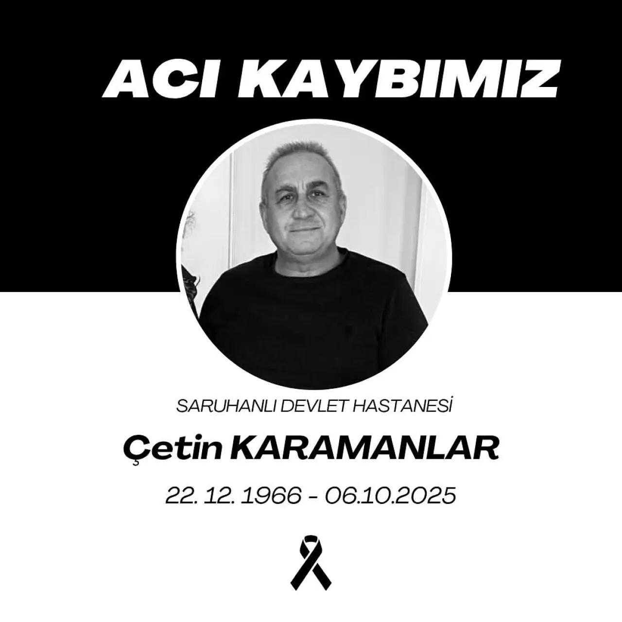Manisa İl Sağlık Müdürlüğünden yapılan açıklamada, Saruhanlı Devlet Hastanesi personeli Çetin Karamanlar’ın hayatını kaybettiği belirtildi. İl Sağlık Müdürü Uzm. Dr. Mehmet Fatih Zeren; merhuma rahmet, ailesi ve sağlık camiasına başsağlığı diledi. Zeren mesajında, “Saruhanlı Devlet Hastanesi’nde görev yapmakta olan çalışma arkadaşımız Çetin Karamanlar’ın vefatını derin bir üzüntü içerisinde öğrenmiş bulunmaktayız. Merhuma Allah’tan rahmet; kederli ailesine ve Manisa sağlık camiasına başsağlığı dileriz,” ifadelerine yer verdi. Karamanlar’ın vefat haberi, mesai arkadaşları ve sevenleri arasında büyük üzüntüye neden oldu. Kahraman’ın naaşı, hastane bahçesindeki tören ve öğle namazına müteakip İstasyon Camiinde kılınan cenaze namazının ardından son yolculuğuna uğurlandı.