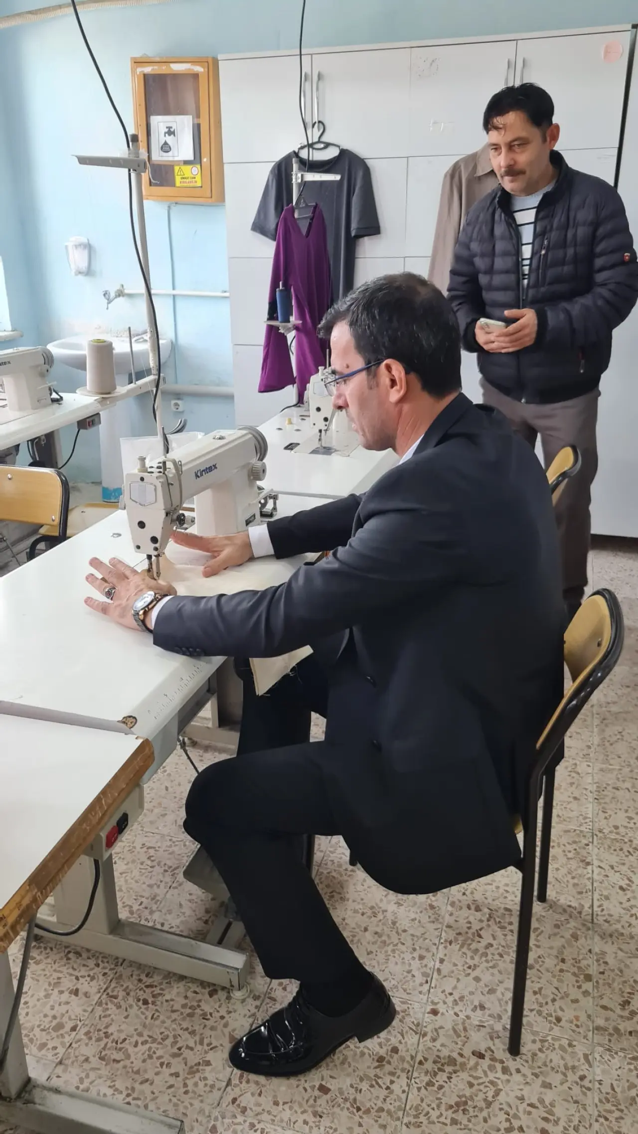 Her atölyede öğrencilerin mesleki becerilerini geliştirmeye yönelik çalışmalarını ilgiyle izleyen Kaymakam Dalak, giyim atölyesinde tasarım ve dikim süreçleri, çocuk gelişimi atölyesinde materyal hazırlama, tarım alanında seralardaki üretim faaliyetleri, muhasebe-finansman alanında ise uygulamalı finans işlemlerini incelendi.