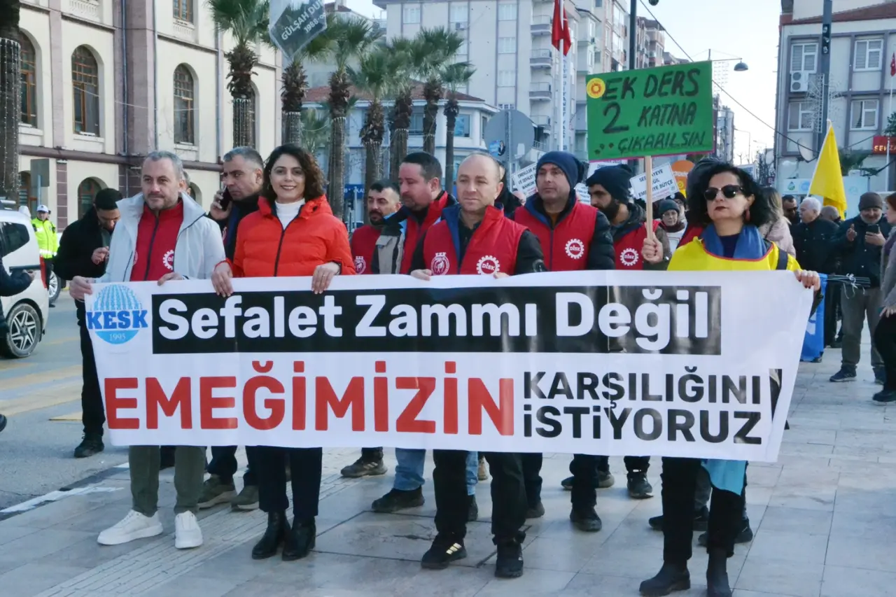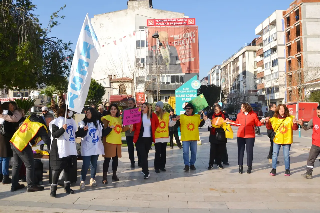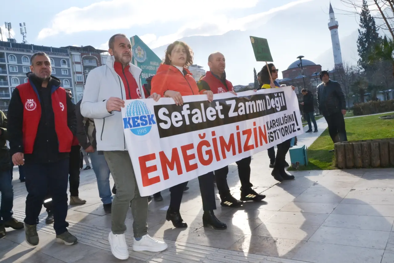 Manisa’da kamu emekçileri, artan yaşam maliyetleri ve ücret politikalarına tepki göstermek amacıyla üretimden gelen güçlerini kullanarak iş bırakma eylemi gerçekleştirdi. KESK Manisa Şubeler Platformu’nun çağrısıyla Şehzadeler ilçesindeki Bülent Koşmaz Parkı’nda bir araya gelen emekçiler, buradan 15 Temmuz Demokrasi Meydanı’na yürüdü. Eyleme işçi sendikaları, sivil toplum kuruluşları, siyasi parti temsilcileri, vatandaşlar ve basın mensupları katıldı. Meydanda yapılan basın açıklamasında, ekonomik koşulların çalışanları giderek daha fazla zorladığı vurgulandı ve talepler kamuoyuyla paylaşıldı.