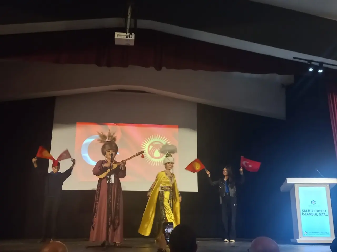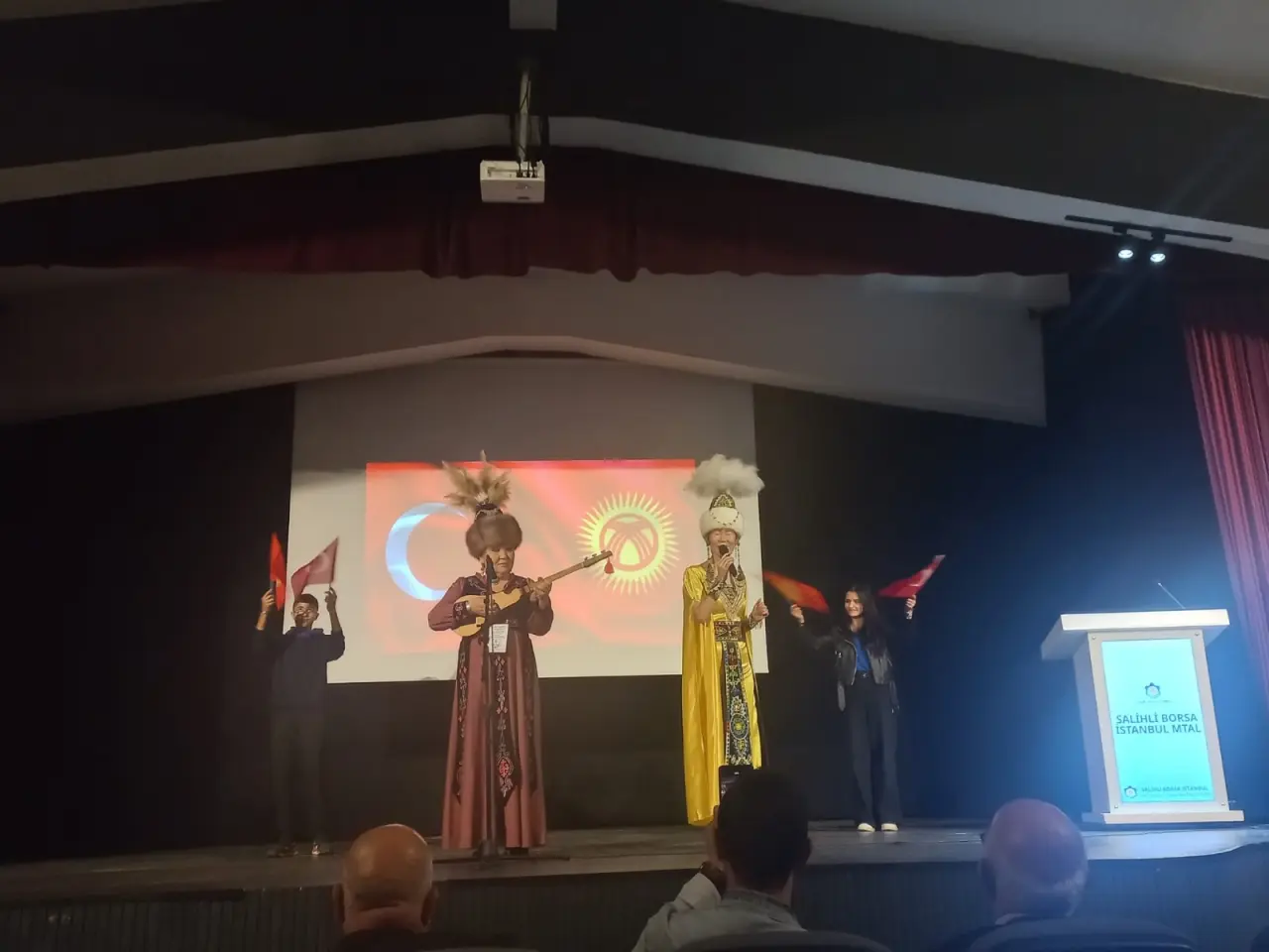 Salihli Kültür Sanat ve Edebiyat Derneği (SAKÜDER)tarafından hazırlanan Uluslararası 1. Kültür Sanat Festivali kapsamında, Salihli Borsa İstanbul Mesleki ve Teknik Anadolu Lisesi Öğrencileri ile Kırgızlı sanatçılar Darika Adatovna Acar ve Burulkan Stamkulova bir araya geldi. Okul konferans salonunda yapılan konserde Kırgız Destanı ve müziklerinden örnekler veren Kırgız sanatçılar büyük ilgi gördü. SAKÜDER Başkanı Gündüz Aydın, program hakkında bilgi verdi ve okul idaresi ile Kırgız sanatçılara teşekkür etti. Salihli Borsa İstanbul Mesleki ve Teknik Anadolu Lisesi Müdürü Ümit Zeybek yaptığı konuşmada Saküder’e ve sanatçılara teşekkür etti. Kırgız sanatçılar Darika Adatovna Acar ve Burulkan Stamkulova, Kırgız destanlarından örnekler verdi ve dansları ve kıvrak müzikleri ile izleyenlere unutulmaz anlar yaşattı. Program sonunda öğrenciler ve öğretmenler Kırgız sanatçılar Darika Adatovna Acar ve Burulkan Stamkulova ile bol bol fotoğraf çektirdiler.