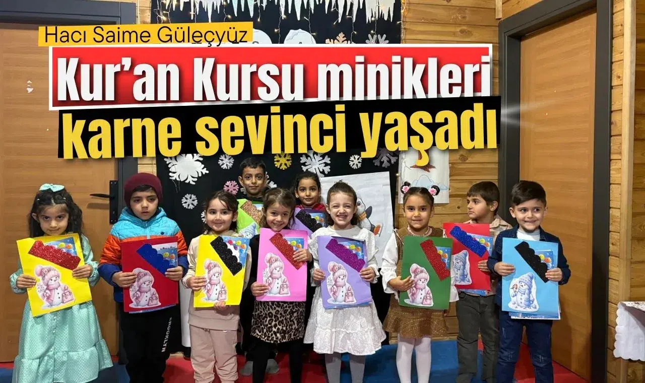 Manisa Yunusemre Müftülüğü’ne bağlı Hacı Saime Güleçyüz 4-6 yaş Kur’an kursunda minikler 15 günlük yarıyıl tatiline çıktı. Yarıyıl tatiline çıkan öğrencilere , öğretmenleri tarafından hediyeler verilerek minikler karne sevincini yaşadı.