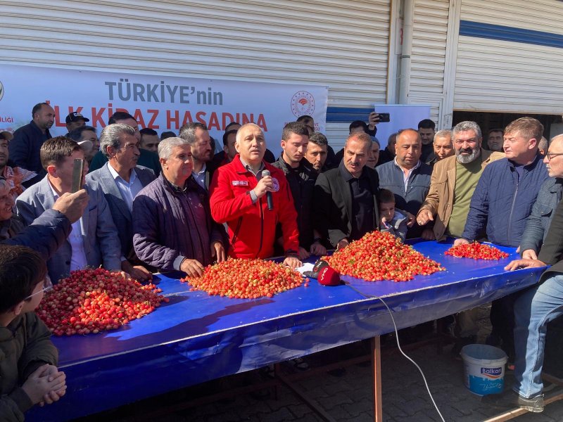 "Manisa gene bir geleneği daha bozmadı. Kuzey Yarımküre'nin açık alanda ilk kirazını 13 Nisan tarihi itibariyle hasadını gerçekleştiriyoruz. Yaşadığımız 10, 11, 12 Nisan tarihlerindeki don afetleri hakikaten tüm Türkiye'de tarımsal anlamda çiftçilerimizi üzdüğü gibi bakanlık olarak bizleri de derinden üzmüştü. Ama bir taraftan da üretim devam ediyor. Gördüğünüz gibi şu anda Sancaklı bölgesindeyiz. Bir taraftan da Kuzey Yarımküre'nin açık alandaki ilk kirazını çıkarmanın da mutluluğunu yaşıyoruz. İnşallah don afetinden dolayı olan yaralar da en kısa sürede sarılacak. Tabii bununla beraber Manisa 2 milyon 800 binden fazla bir kiraz ağacı varlığına sahip. Alan anlamında Türkiye'de üretim alanı anlamında ikinci konumda olan bir şehiriz. Ama malumunuz olduğu üzere bu erkencilik durumu bizim kirazımızı katma değerli hâle getiriyor ve ihracatta da talep konusu ediyor. Dolayısıyla burada ben üreticilerime hem teşekkür ediyorum, hem tebrik ediyorum. Bu ürünü 13 Nisan'da çıkarmak kolay değil. Sağlıklı bir şekilde arkamızda da gördüğünüz gibi kirazı yetiştirerek bugün hasada getiren tüm çiftçilerimize en kalbi şükranlarımı sunuyorum. İnşallah bereketli bir sezon geçireceğiz ve katma değerli bir şekilde de dünyanın dört bir tarafına kirazımızı, erkenci kirazımızı da ihraç etmiş olacağız. Manisa kirazda 46 bin ton üretim gerçekleştiren bir şehir. Sancaklı bölgesinde yani merkeze yakın bölgede başlayan hasat uzun bir süre yaklaşık 2 ay sonra Demirci'de devam eder. Dolayısıyla uzun bir periyotta da kiraz hasadı devam eden bir ildeyiz. İlk hasadı bugün gerçekleştiriyoruz. Son hasadı da gene Demirci ilçemizin en yüksek yerlerinde yapmış olacağız. Bugünkü bu hasatla beraber kirazla ilgili hasat süreci de başlamış oldu. Kirazda erkencilik, her zaman kazanç anlamında çiftçimize her zaman daha fazla gelir getiren bir durumdur. O yüzden biz erkenciliği önemsiyoruz. Erkencilik ürünlerin, daha iyi fiyattan satılmasını sağlar ve çiftçimizi de memnun eder. Erkencilik her zaman avantajlıdır. Bu bölgede bu anlamda kıymetli bir bölge."