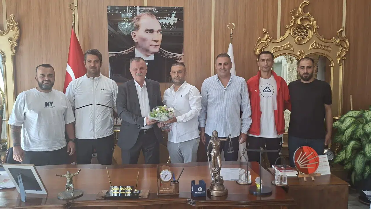 Manisa Amatör Kulüpler Birliği Başkanı Mehmet Salih Bektaş, yönetim kurulu üyeleriyle birlikte Yunusemre Belediye Başkanı Semih Balaban’ı ziyaret etti. Yunusemre Belediyespor Başkanı Bülent Kanik’in de hazır bulunduğu ziyarette Yunusemre ilçesinde bulunan amatör takımların nakdi yardım, servis ve tesis konularında istişare edildi. Başkan Balaban, amatöre destek vereceğini söyledi. Başkan Pektaş ile Başkan Balaban’a desteklerinden dolayı teşekkür etti. HABER MERKEZİ