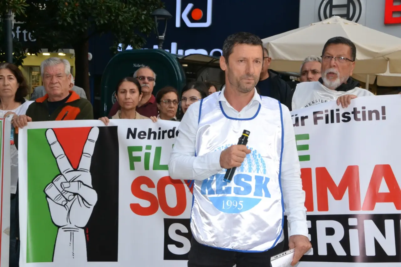 Başkan Ramazan, “Sumud filosuna Netanyahu hükümeti tarafından yapılan terörist saldırı aynı zamanda bizlere bir yol göstermektedir. Devletler ve uluslararası kurumlar sorumluluklarını yerine getirmeyip sessiz kalsa da, halkların dayanışması Filistin direnişini güçlendirmektedir. İsrail’e limanlarını açan, petrolünü, silahını, istihbarat desteğini sağlayan ülkeler ve şirketler, bu suçun ortaklarıdır. Filistin halkının beklediği en temel dayanışma, işte bu bağları kesmekle, bu işbirliklerini sonlandırmakla mümkündür. Buradan iktidara sesleniyoruz: Hamasi nutukları artık bırakın. Gün somut adımlar atma Netanyahu hükümeti ile diplomatik, ticari ve askeri ilişkileri derhal keserek Filistin halkının yanında olma günüdür. Soykırımcı işgal devletine petrol akıtan, silah taşıyan Filistin halkına yapılan soykırıma destek olan tüm ortaklıklarınızı derhal sonlandırın. Biz bu ülkenin emekçileri olarak, emeğimiz üzerinden kurulan sömürü düzeninin İsrail’in savaş politikalarına da hizmet ettiğini görüyor ve buna karşı mücadelemizi büyütme çağrısı yapıyoruz. Filistin halkının özgürlük iradesi de, dünya halklarının dayanışması da hiçbir saldırıyla kırılamayacaktır. Sumud Filosu’nun yüzlerce yolcusu, bu kararlılığı tüm insanlığa mal etmiştir. Bizler de buradan ilan ediyoruz: Savaş ve katliam politikalarına karşı, Filistin halkının yanında, emperyalizmin ve işbirlikçilerin karşısında olacağız. Yaşasın Ezilen halkların ortak mücadelesi! Soykırımcı Netanyahu hükümetine tam ambargo! Kahrolsun savaş ve soykırım politikaları! Nehirden denize özgür Filistin!” diye konuştu. HABER: CÜNEYT HASÇELİK