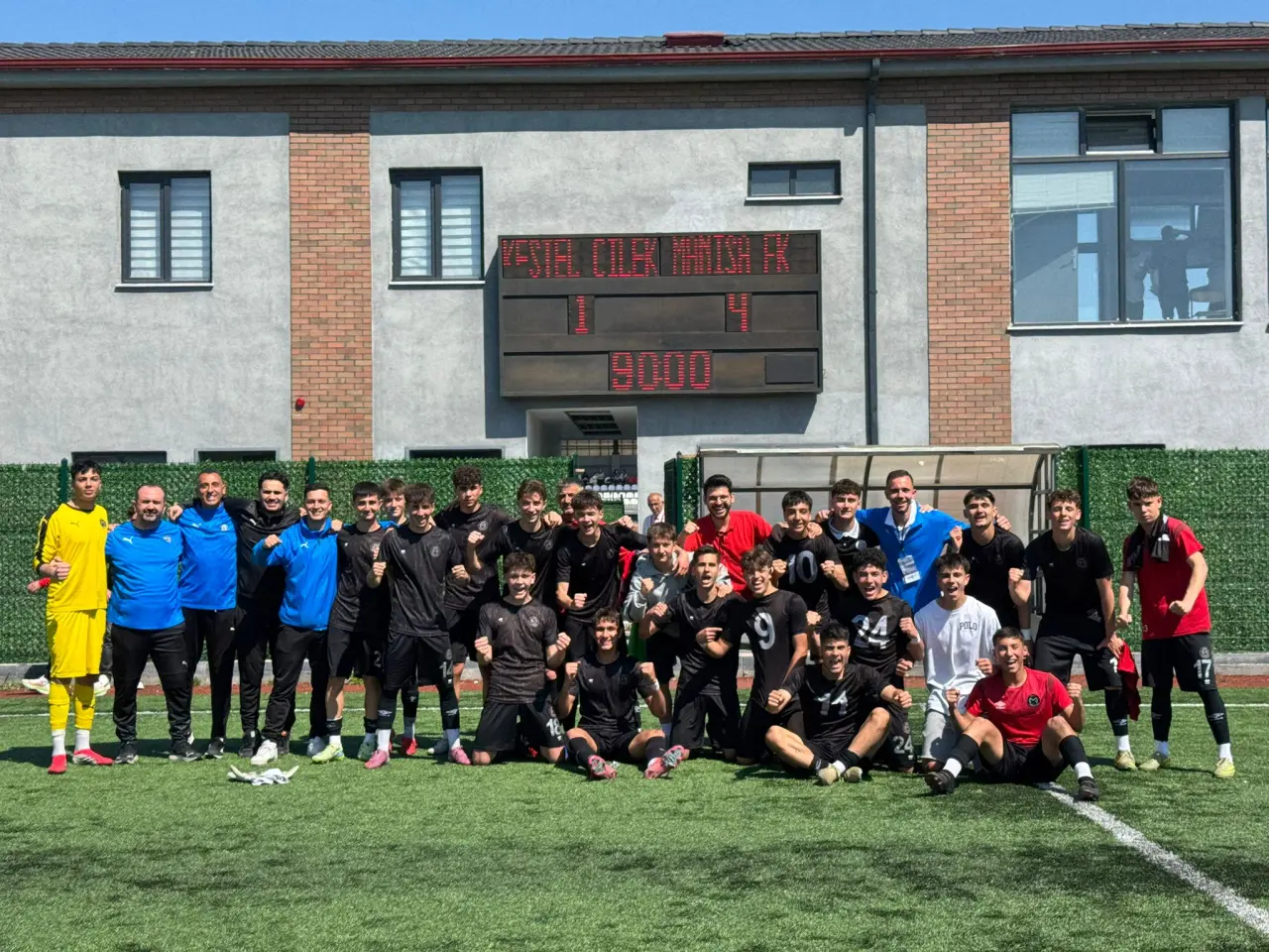 Karşılaşmanın ilk yarısı dengeli bir oyunla golsüz eşitlikle tamamlandı. İkinci yarıda kalesinde gördüğü golle 1-0 geriye düşen Manisa FK, bu dakikadan sonra oyunun kontrolünü tamamen eline aldı. Hücumda etkili bir performans ortaya koyan Manisa temsilcisi, üst üste bulduğu gollerle skoru 4-1’e getirerek sahadan net bir galibiyetle ayrıldı. Mücadelenin bitiş düdüğüyle birlikte sahada büyük sevinç yaşanırken, tribünlerde takımlarını yalnız bırakmayan aileler de bu coşkuya ortak oldu. Manisa FK’nın gollerini Kaan Altınbaş, Oğuzhan Yurtdaş, Ada Kayra Kököz ve Yusuf İmer kaydetti.