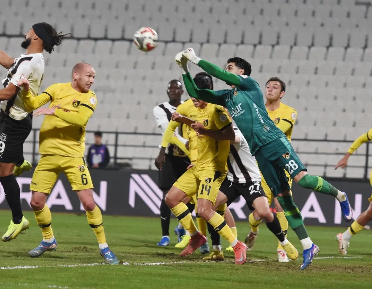 14. dakikada İstanbulspor'da sağ kanattan geliştirilen atakta topla buluşan Ömer Faruk'un pasında Yusuf Ali, topu bekletmeden Mamadou'ya aktarmak istedi ancak Adekanye araya girerek Yusuf Ali'nin pozisyonunu bozdu.
