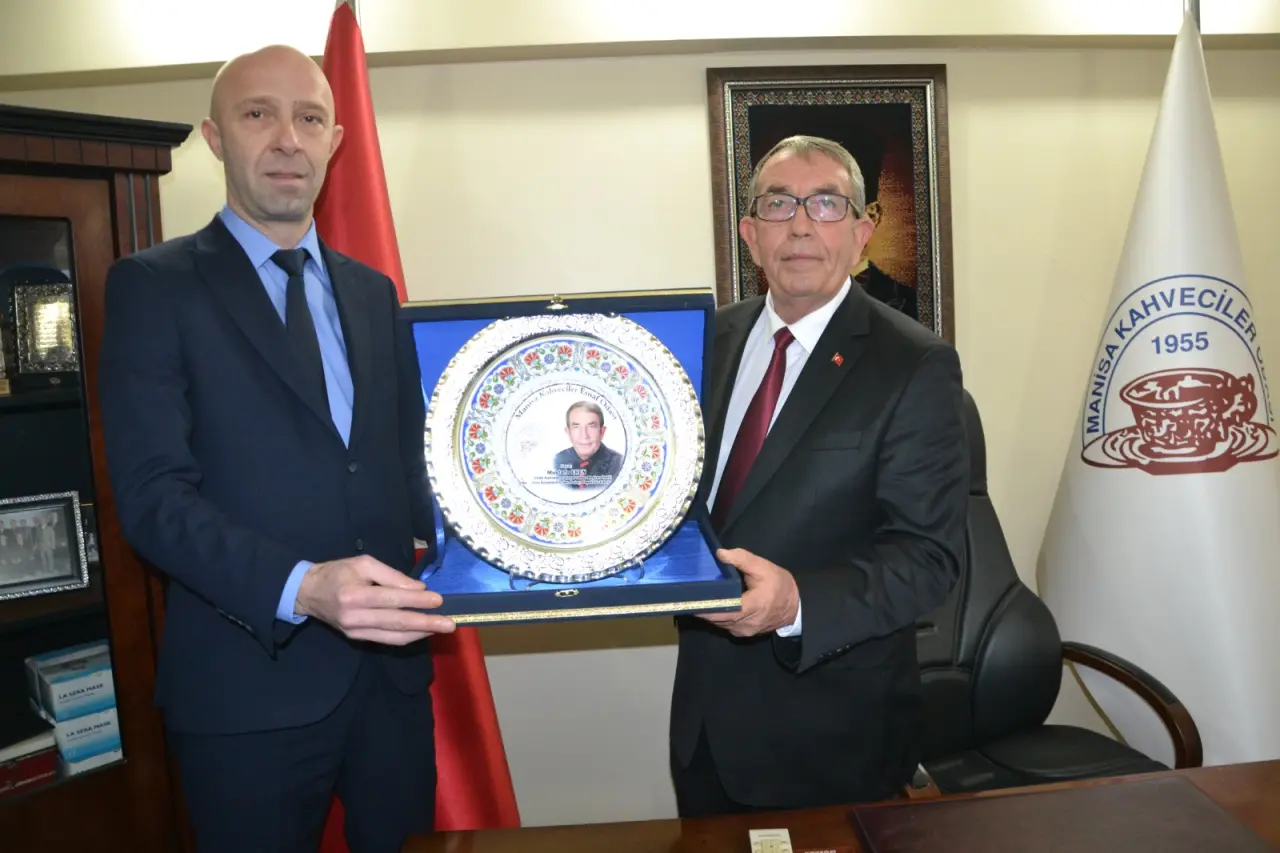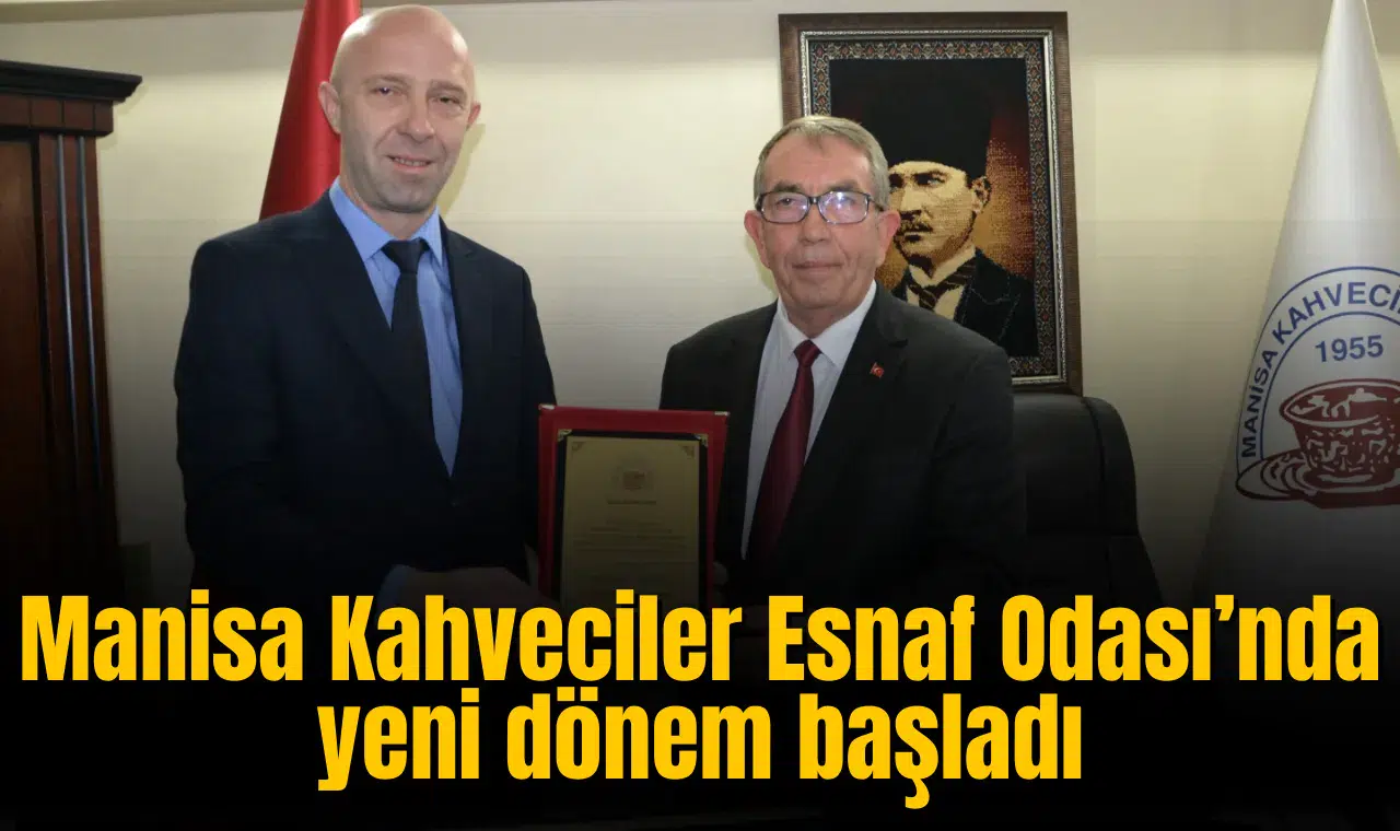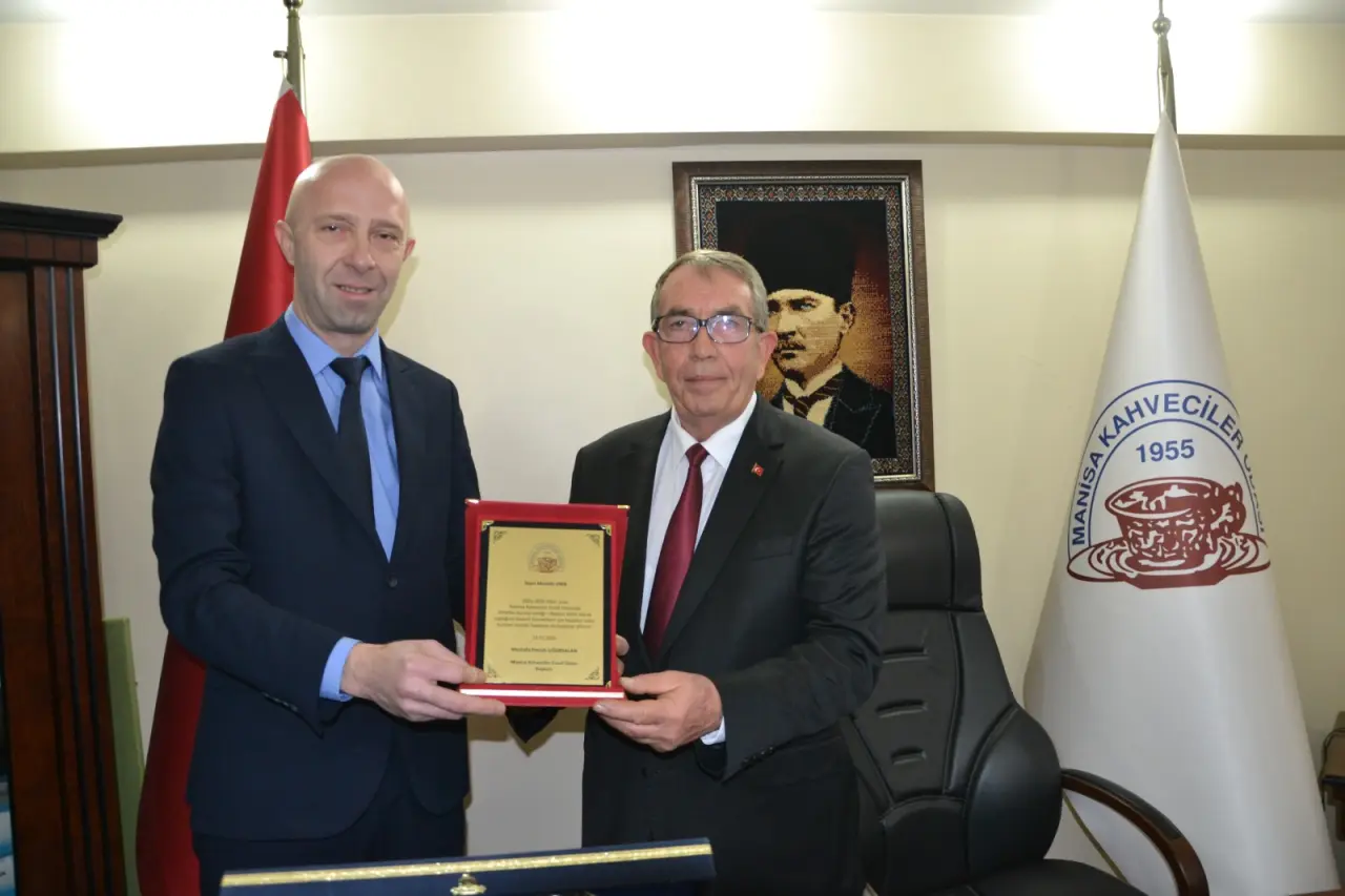 Manisa Kahveciler Esnaf Odası’nda yeni dönem başladı. 22 Ocak tarihinde yapılan Manisa Kahveciler Esnaf Odası’nın Olağan Genel Kurulu’nda başkanlığa seçilen Mustafa Emrah Uğursalan, mazbatasını aldıktan sonra görevine resmen başladı. Manisa Kahveciler Odası Başkanı Emrah Uğursalan, 2001-2026 yılları arası odada yönetim kurulu üyeliği, başkanvekilliği görevlerinde bulunan Başkanvekili Mustafa Eren’e hizmetlerinden dolayı teşekkür ederek plaket takdim etti.