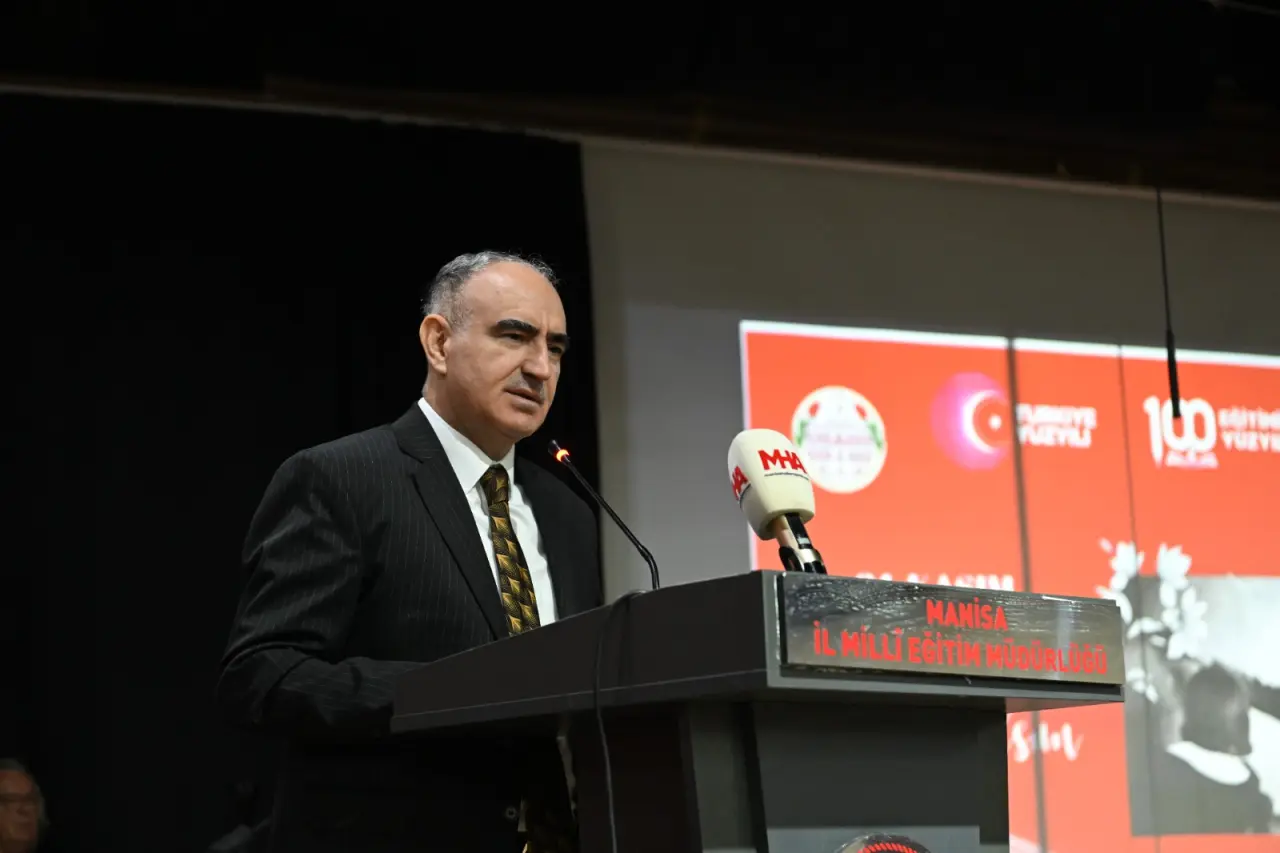 Manisa Valisi Vahdettin Özkan, “Öğretmenlik, sadece bir meslek olarak algılanmamalıdır. Öğretmen, esas itibarıyla bütün mesleklerin ve hayat tarzlarının şekillendiricisi, yönlendiricisi, rehberi ve takip edicisidir. Toplumları şekillendiren, insanın kendini keşfetmesine rehberlik eden kutsal bir görevdir. Öğretmenlik, vicdani bir sorumluluk gerektirir; mesaiyle sınırlı olmayan fedakârlıklarla yürütülür. Öğretmenler, öğrencilerinin gelişiminden emin olmak için gecesini gündüzüne katar. Öğretmen, çocuklarımızdaki var olan yetenekleri fark ettiren kişidir ki bu da mesleği en kutsal kılan unsurlardan biridir. Öğretmenler, sadece bilgi aktaran kişiler değildir. Aynı zamanda medeniyetimizin değerlerini gelecek nesillere aktaran en önemli rehberlerdir. Bu değerlerin doğru şekilde gençlere taşınması büyük oranda öğretmenlerimizin sayesindedir. Toplumsal değişim karşısında kendini sürekli yenileme sorumluluğu da öğretmenlerin omuzlarındadır. Eğitim, toplumların ve kalkınmanın temelidir. Öğretmenler, sürekli öğrencileriyle ve yeni bilgilerle iç içe olarak teknolojiyi doğru kullanmayı öğreten ve rehberlik eden kişilerdir; bu, hem bir fırsat hem de ek bir sorumluluktur. Dünya yoğun etkileşim içindedir ve çocuklarımız küresel bilgilerle iç içe büyüyor. Onları iyilikleri görmeye yönlendirmek ve kötülüklerden korumak öğretmenlerin de sorumluluğundadır; bu nedenle öğretmenlerin toplumsal rolü önem taşımaktadır. Hayat boyu eğitimde öğretmen rehberliği kritik öneme sahiptir. Öğrenci ve veli iletişimi eğitimin ayrılmaz parçasıdır; teknolojinin yaygın kullanımı sırasında öğretmenin rehberlik rolü ve velilerin bilinçli desteği önemlidir. 24 Kasım Öğretmenler Günü vesilesiyle düzenlenen bu toplantı büyük önem taşımaktadır. Öğretmenlerimizin değerini bilmek sadece bugüne mahsus değildir; her an öğretmenliğin kutsiyetini hatırlamak gerekir. Organizasyonda emeği geçen herkese teşekkür ederim. Eğitim alanında fedakârca görev yaparken şehit olan öğretmenlerimizi rahmetle anıyor, eğitimin kalkınmadaki ve insani değerlerin gelişimindeki rolünü bir kez daha vurguluyorum. Bu sürecin en büyük öncülerinin öğretmenlerimiz olduğunu da tekrar ifade ediyorum” dedi.