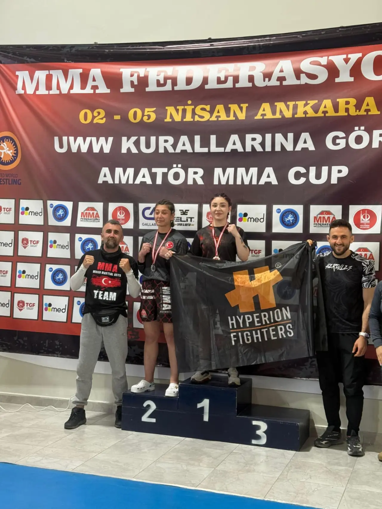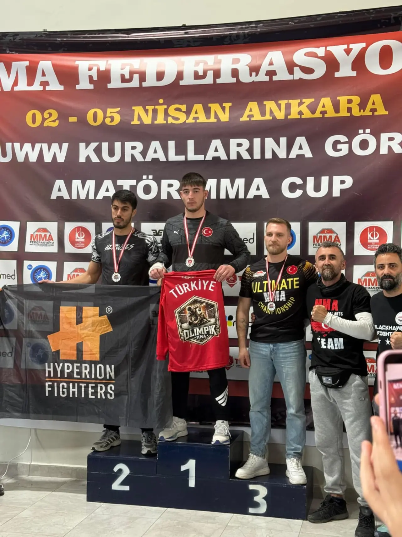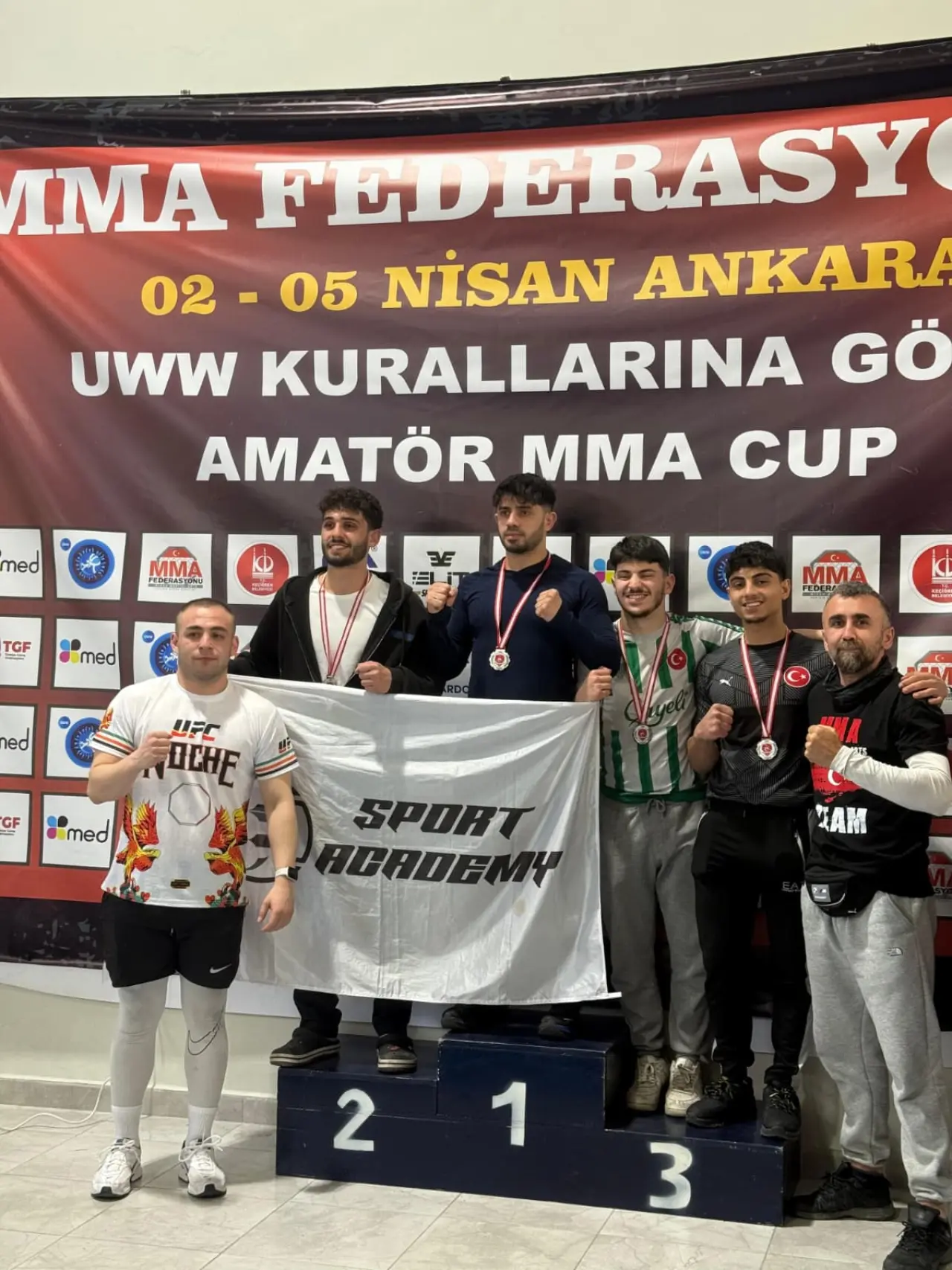 Manisa Olimpik MMA Takımı, Ankara'da düzenlenen Amatör MMA Cup'ta elde ettiği derecelerle Manisa'nın gururu oldu. Dünya Güreş Federasyonu bünyesinde organize edilen ve Türkiye'de ilk kez gerçekleştirilen Amatör MMA Cup, 2-5 Nisan tarihleri arasında Ankara'da yapıldı. Zorlu geçen organizasyonda Manisalı sporcular toplamda 2 altın, 2 gümüş ve 2 bronz madalya kazanarak önemli bir başarıya imza attı. Müsabakalarda Barış Kaplan 77 kiloda birinci, Emirhan Bulut Çağlar 93 kiloda birinci, Mehtap Doğan 57 kiloda ikinci, Hamza Öz 100 kiloda ikinci, Eyyüp Yektar 66 kiloda üçüncü, Toprak Özçevikel ise 57 kiloda üçüncü oldu.