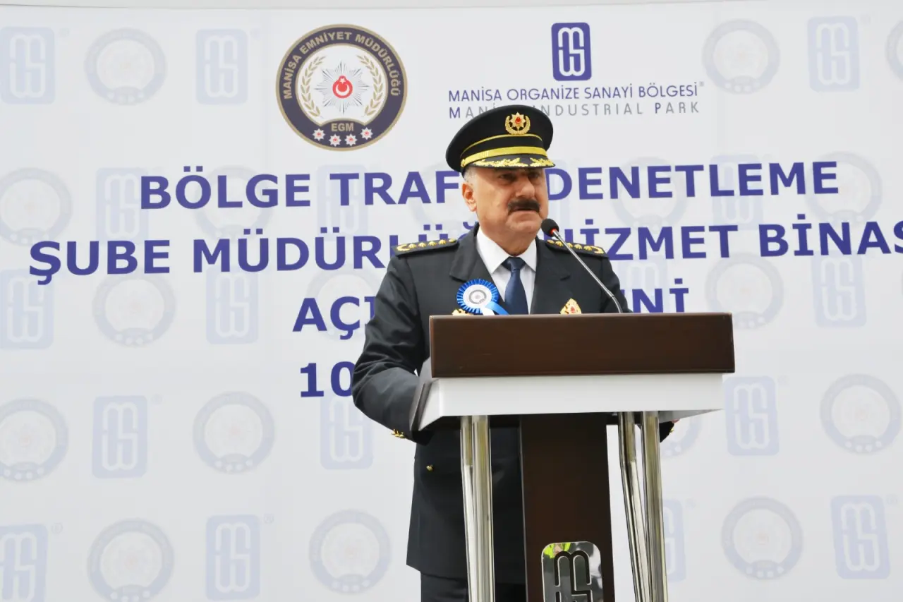 Manisa Emniyet Müdürü Fahri Aktaş, Manisa’ya kazandırılan Bölge Trafik Denetleme Şube Müdürlüğü hizmet binasının hayırlı olmasını diledi. Manisa Organize Sanayi Bölgesi Yönetim Kurulu Başkanı Sait Cemal Türek’e katkılarından dolayı teşekkür etti.