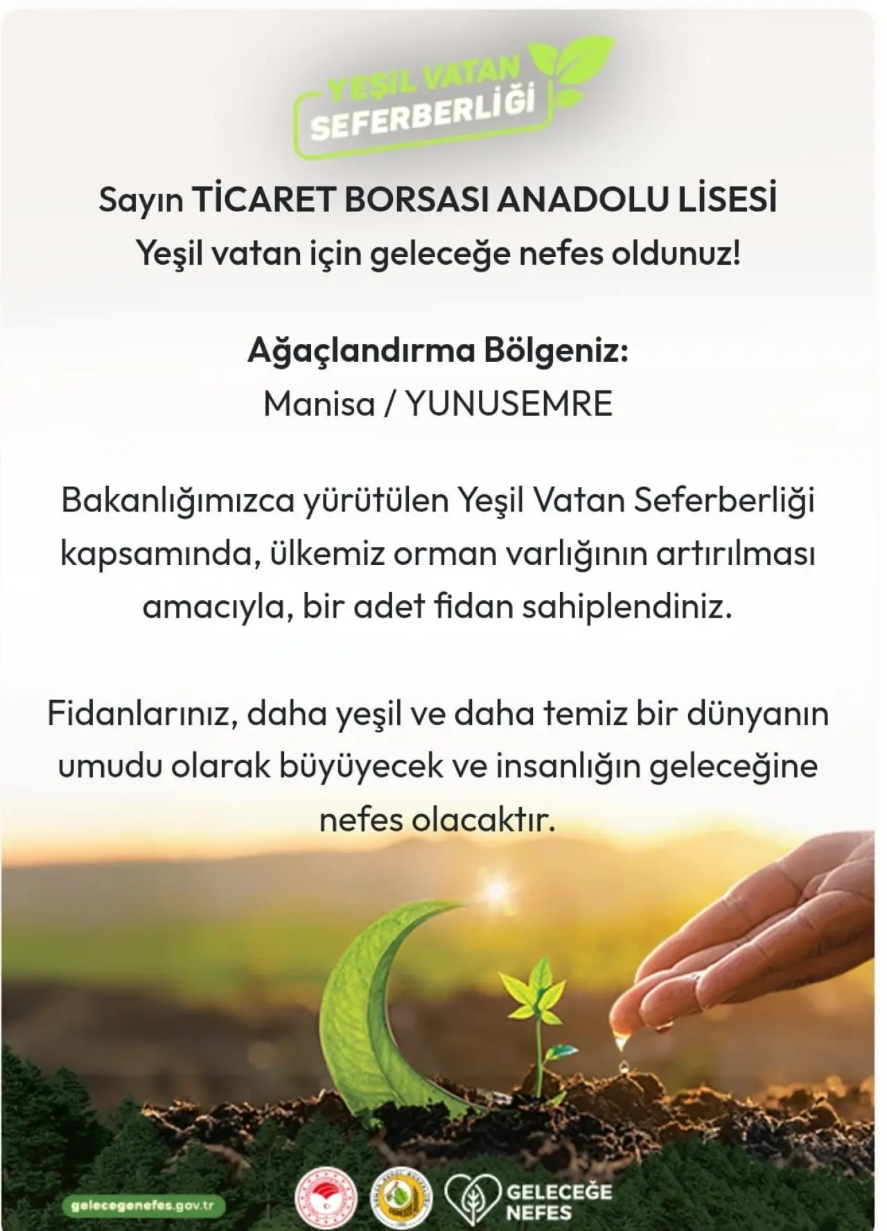 Bu anlamlı etkinlik, Köklerden Geleceğe uzanan bir bilinçle, Maarif Modeli’nin çevre duyarlılığını ve Yeşil Vatan bilincini öğrencilerle bütünleştirmeyi amaçladı.