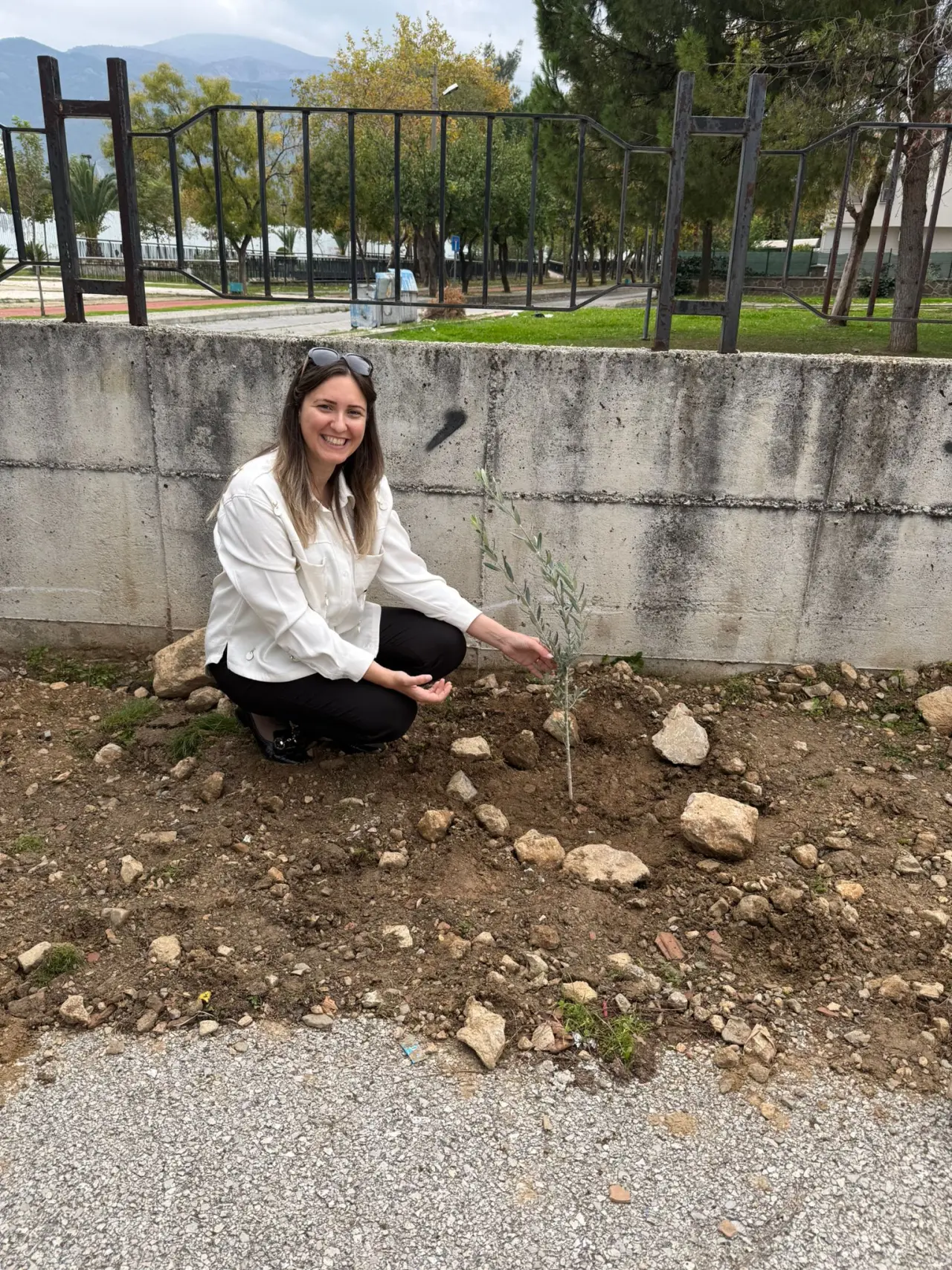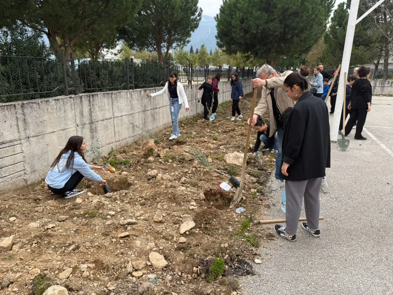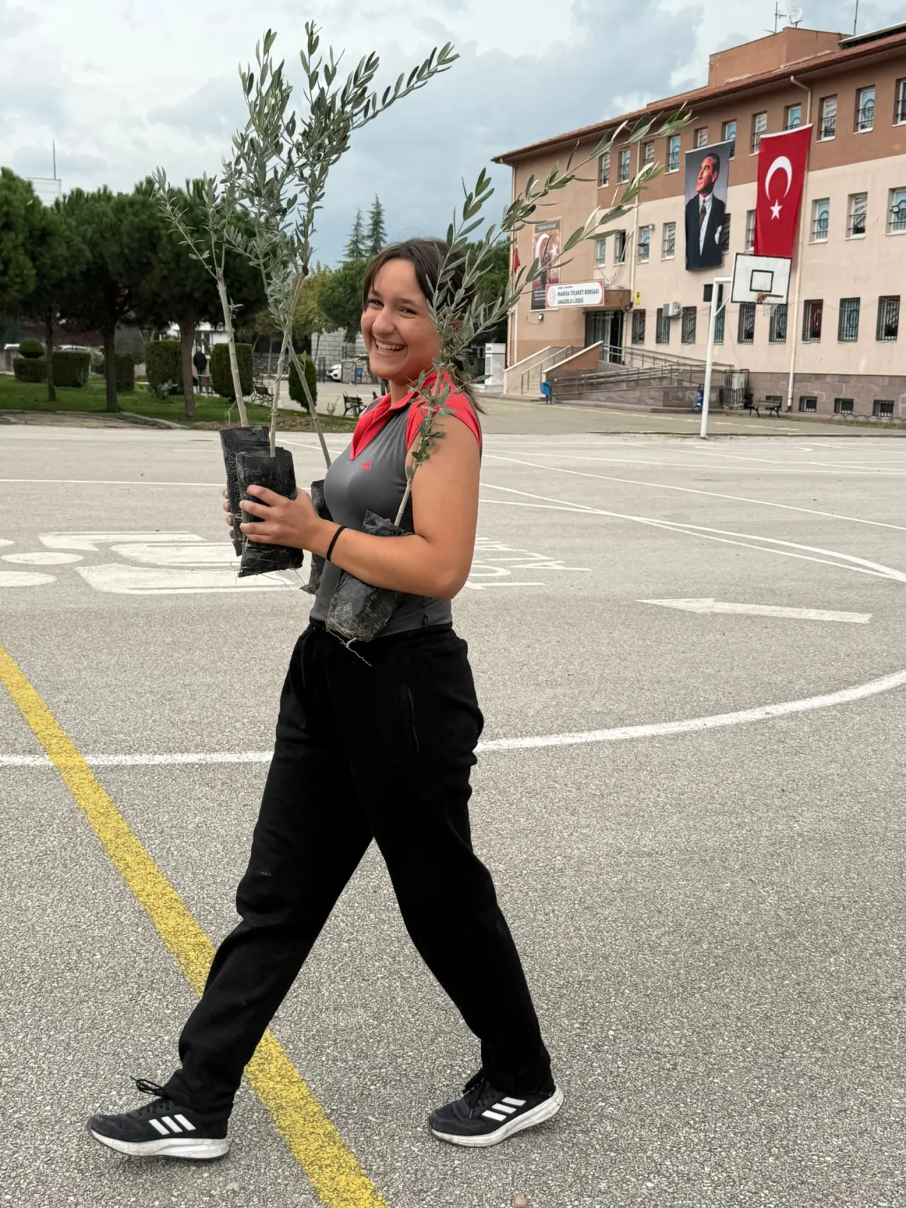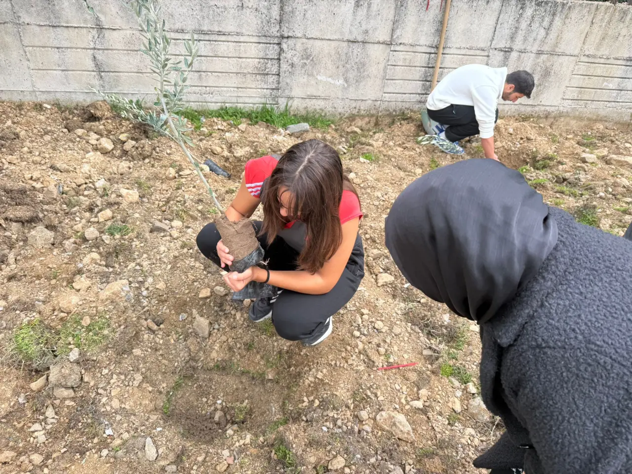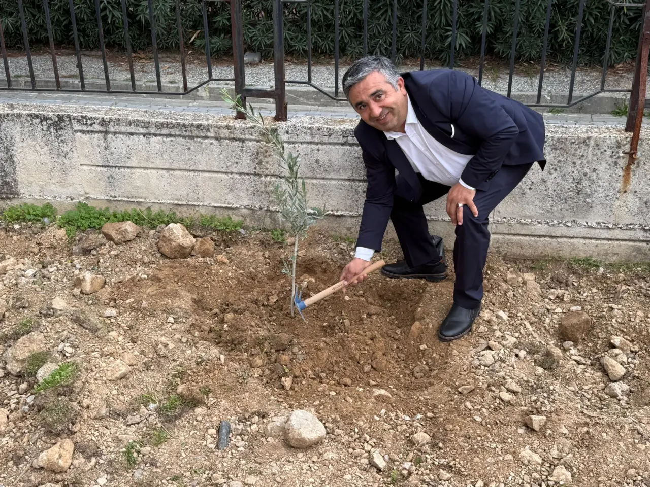 Okul bahçesinde düzenlenen programda, “Her Çocuğun Bir Ağacı Var” projesi kapsamında 60 adet zeytin fidanı toprakla buluşturuldu. Kökleriyle geçmişi, dallarıyla geleceği simgeleyen zeytin ağacı, hem barışı hem de sürdürülebilir yaşamı temsil etti.