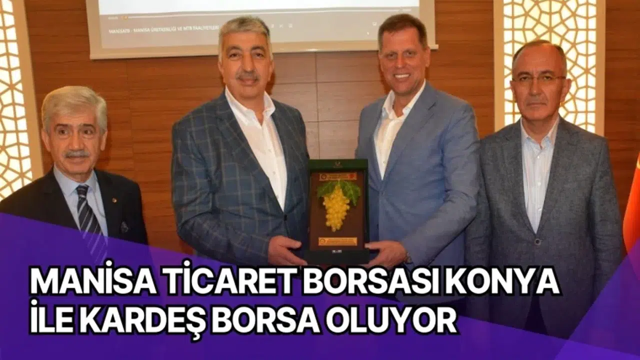 Türkiye Odalar ve Borsalar Birliği Ticaret Borsaları Konsey Konsey Başkanı ve Konya Ticaret Borsası Yönetim Kurulu Başkanı Hüseyin Çevik, Meclis Başkanı Mehmet Büyükalim ve beraberindeki heyet Manisa Ticaret Borsasını ziyaret etti. Yapılan ziyarette Manisa Ticaret Borsası ile Konya Ticaret Borsasının “Kardeş Borsa” olması için ilk adımlar atıldı.