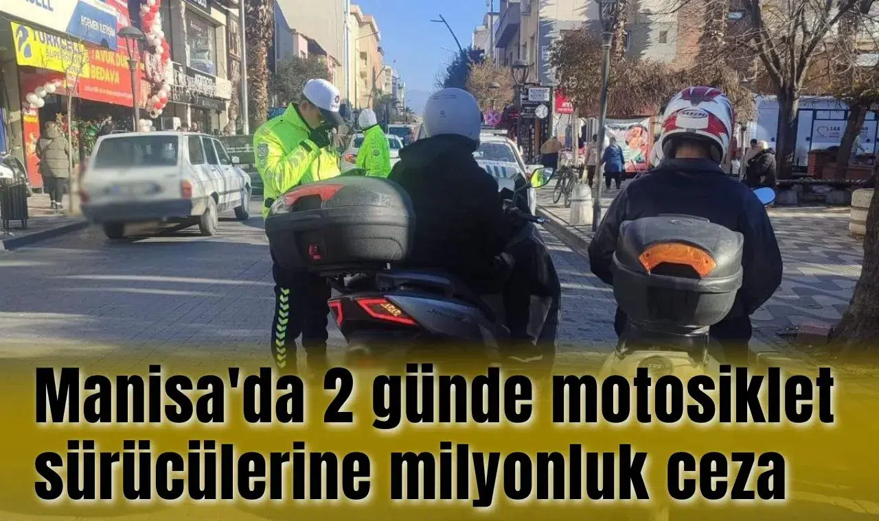 Manisa İl Emniyet Müdürlüğü Trafik Denetleme Şube Müdürlüğü ve ilçe trafik birimleri, 3-5 Ocak 2026 tarihleri arasında motosiklet ve motorlu bisiklet denetimi gerçekleştirdi. Günlük ortalama 32 ekip, 68 trafik personeli ile yapılan denetimlerde 2 bin 626 araç ve sürücüsü kontrol edildi. Kusurlu görülen 904 araç ve sürücüsüne 2918 sayılı Karayolları Trafik Kanunu kapsamında 3 milyon 251 bin 282 TL idari para cezası uygulandığı açıklandı. Denetimlerde ayrıca 42 aracın da trafikten men edildiği bildirildi.