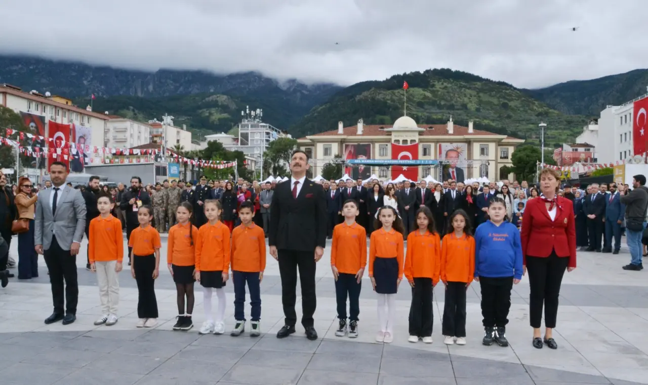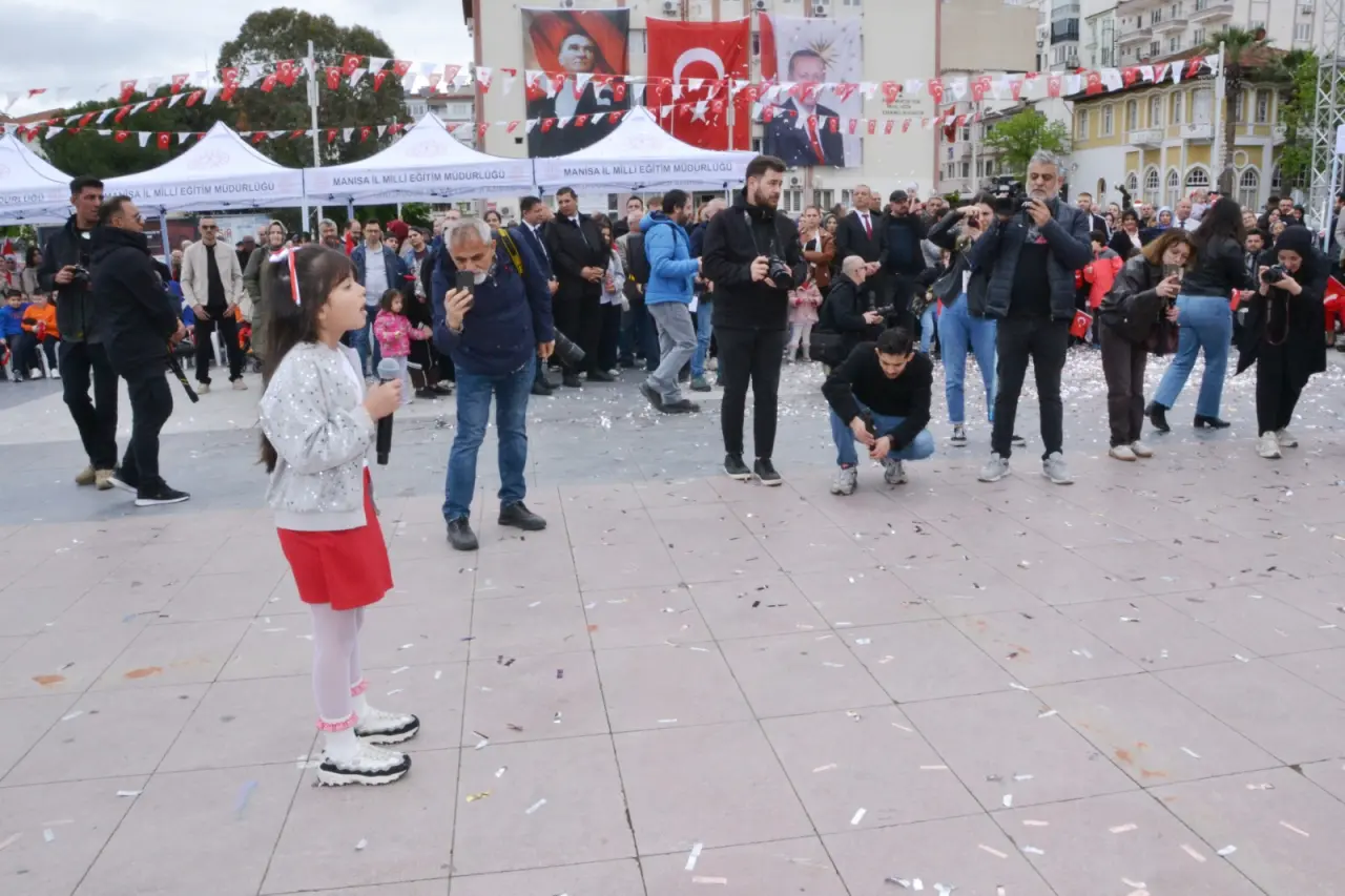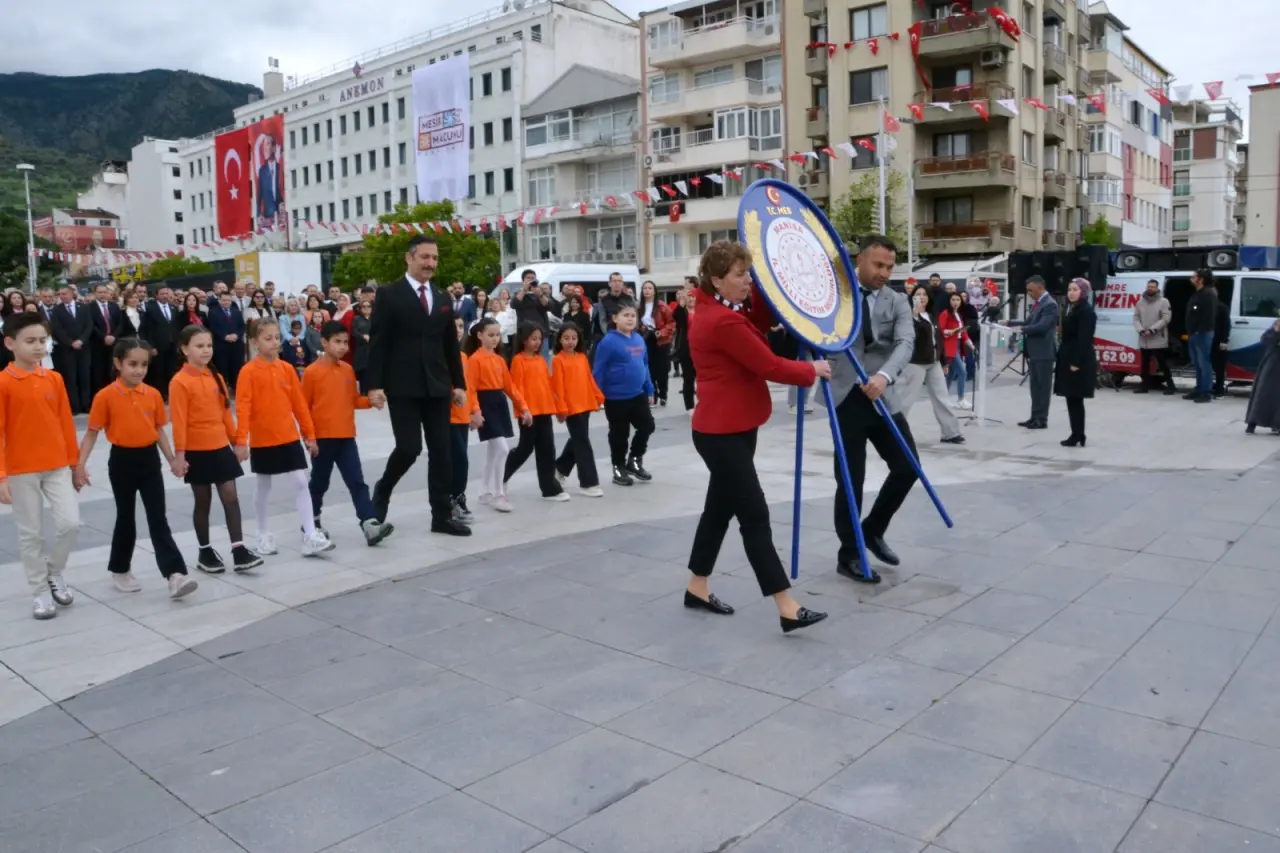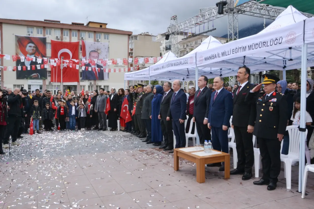 Manisa İl Milli Eğitim Müdürü Mehmet Uğurelli, “Sözlerime başlarken; geçtiğimiz günlerde yüreğimizi dağlayan elim hadiselerde hayatını kaybeden evlatlarımızı ve kahraman öğretmenimiz Ayla Kara’yı rahmet ve minnetle yâd ediyorum. Milletimizin başı sağ olsun. 23 Nisan. Sadece bir bayram değildir. Bir irade-i milliyenin tecellisidir. Bir kader-i müşterekin yeniden yazıldığı kutlu bir milattır. Bir milletin, kendi sözünü kendi söylemeye başladığı o büyük yürüyüşün adıdır. Ve bu yürüyüşün en kıymetli emaneti sizlersiniz. Sevgili çocuklar, Gazi Mustafa Kemal Atatürk’ün bu bayramı sizlere armağan etmesi, sadece bir sevginin değil; bir inancın, bir güvenin, bir gelecek hayalinin ifadesidir. Çünkü bu millet bilir ki; gelecek, kalem tutan ellerde yükselir. Gelecek, düş kuran zihinlerde şekillenir gelecek, yüreği temiz, aklı diri nesillerle kurulur. Bugün burada sadece bir bayramı idrak etmiyoruz. Aynı zamanda bir yemini, bir ahdi, bir misakı tazeliyoruz. Yarım kalan hikâyeleri tamamlama azmini emaneti daha yükseğe taşıma iradesini karanlığa karşı ışık olma mesuliyetini. Geçtiğimiz günlerde yaşanan o elim hadise bize bir kez daha göstermiştir ki; bu topraklarda öğretmenlik, yalnızca bir meslek değildir. Gerektiğinde bir siper gerektiğinde bir fedakârlık gerektiğinde bir adanmışlık destanıdır bir vazife-i mukaddese, bir mesuliyet-i âliyedir. Ayla öğretmen bu hakikati sözle değil, hâl diliyle, hayatıyla bizlere anlatmıştır. Bu duygu ve düşüncelerle; Başta Gazi Mustafa Kemal Atatürk olmak üzere İstiklâl mücadelemizin bütün kahramanlarını, aziz şehitlerimizi rahmetle, gazilerimizi minnetle anıyorum. Kahraman öğretmenlerimizi ihtiramla yâd ediyorum. Ve siz sevgili çocuklarımızın 23 Nisan Ulusal Egemenlik ve Çocuk Bayramı’nı en kalbî duygularımla tebrik ediyorum. Gelecek çok güzel gelecek” dedi.