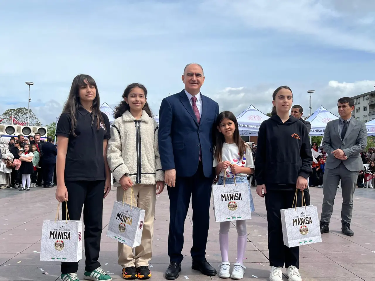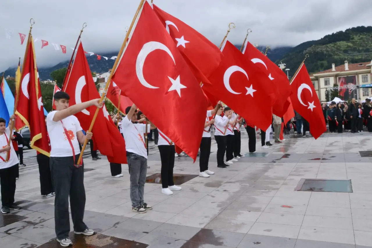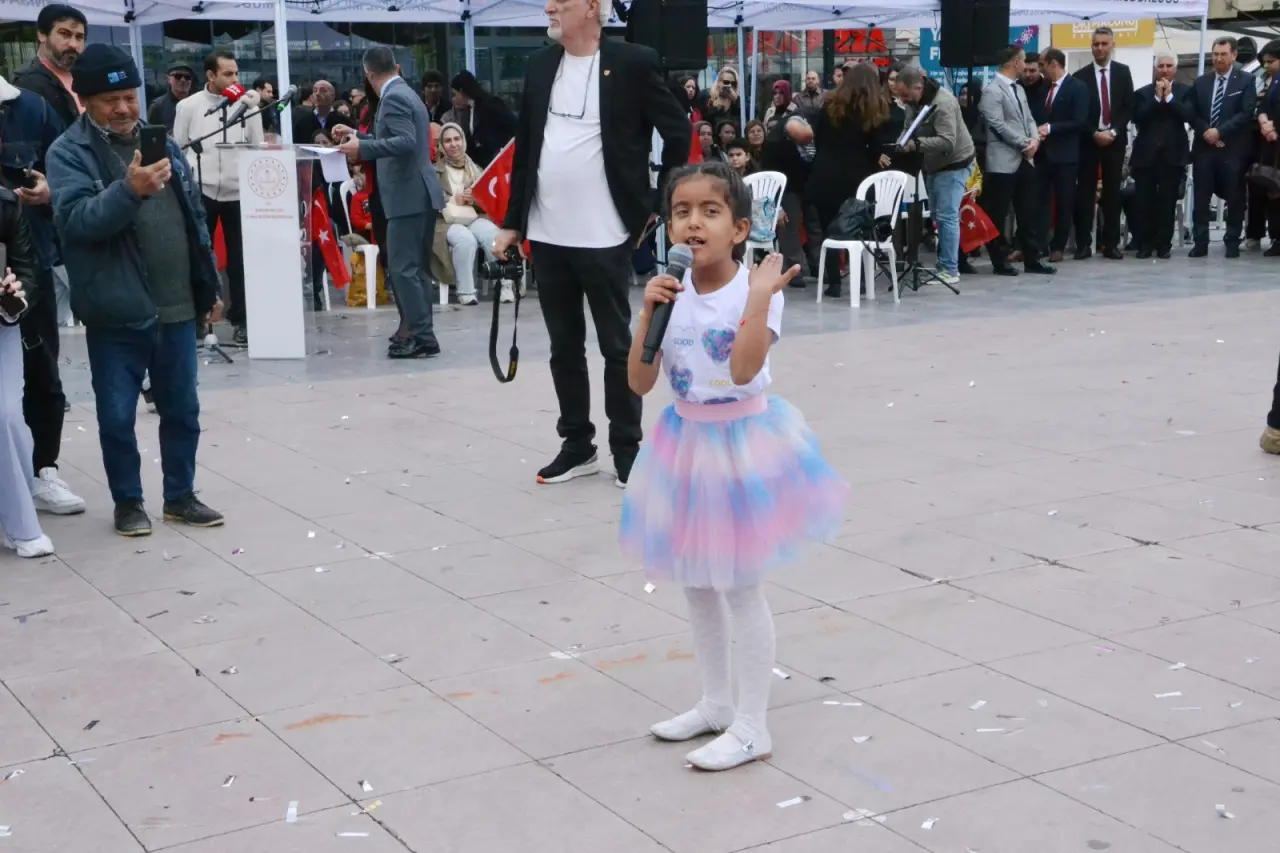 Manisa İl Milli Eğitim Müdürü Mehmet Uğurelli, “Sözlerime başlarken; geçtiğimiz günlerde yüreğimizi dağlayan elim hadiselerde hayatını kaybeden evlatlarımızı ve kahraman öğretmenimiz Ayla Kara’yı rahmet ve minnetle yâd ediyorum. Milletimizin başı sağ olsun. 23 Nisan. Sadece bir bayram değildir. Bir irade-i milliyenin tecellisidir. Bir kader-i müşterekin yeniden yazıldığı kutlu bir milattır. Bir milletin, kendi sözünü kendi söylemeye başladığı o büyük yürüyüşün adıdır. Ve bu yürüyüşün en kıymetli emaneti sizlersiniz. Sevgili çocuklar, Gazi Mustafa Kemal Atatürk’ün bu bayramı sizlere armağan etmesi, sadece bir sevginin değil; bir inancın, bir güvenin, bir gelecek hayalinin ifadesidir. Çünkü bu millet bilir ki; gelecek, kalem tutan ellerde yükselir. Gelecek, düş kuran zihinlerde şekillenir gelecek, yüreği temiz, aklı diri nesillerle kurulur. Bugün burada sadece bir bayramı idrak etmiyoruz. Aynı zamanda bir yemini, bir ahdi, bir misakı tazeliyoruz. Yarım kalan hikâyeleri tamamlama azmini emaneti daha yükseğe taşıma iradesini karanlığa karşı ışık olma mesuliyetini. Geçtiğimiz günlerde yaşanan o elim hadise bize bir kez daha göstermiştir ki; bu topraklarda öğretmenlik, yalnızca bir meslek değildir. Gerektiğinde bir siper gerektiğinde bir fedakârlık gerektiğinde bir adanmışlık destanıdır bir vazife-i mukaddese, bir mesuliyet-i âliyedir. Ayla öğretmen bu hakikati sözle değil, hâl diliyle, hayatıyla bizlere anlatmıştır. Bu duygu ve düşüncelerle; Başta Gazi Mustafa Kemal Atatürk olmak üzere İstiklâl mücadelemizin bütün kahramanlarını, aziz şehitlerimizi rahmetle, gazilerimizi minnetle anıyorum. Kahraman öğretmenlerimizi ihtiramla yâd ediyorum. Ve siz sevgili çocuklarımızın 23 Nisan Ulusal Egemenlik ve Çocuk Bayramı’nı en kalbî duygularımla tebrik ediyorum. Gelecek çok güzel gelecek” dedi.