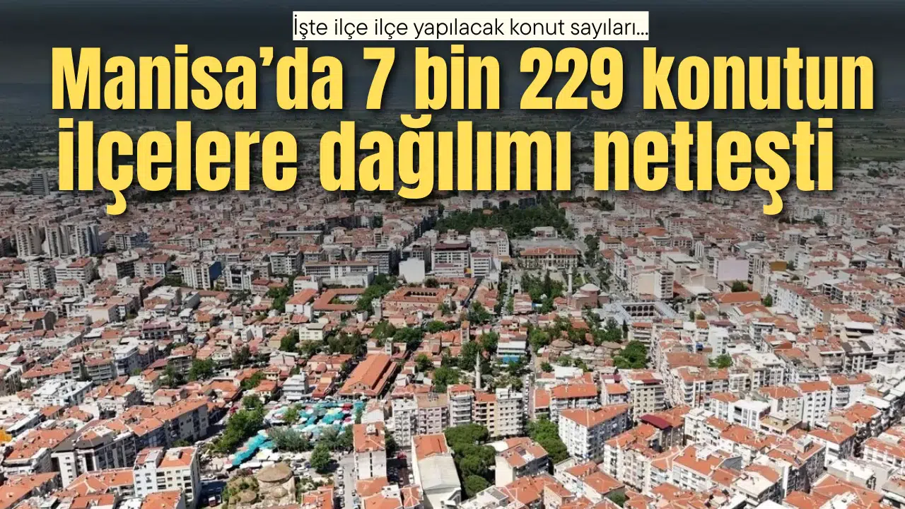 Manisa’da TOKİ eliyle 7 bin 229 sosyal konut yapılacak; en büyük kontenjan merkez ilçelere ayrıldı.Çevre, Şehircilik ve İklim Değişikliği Bakanlığı ile Toplu Konut İdaresi Başkanlığı (TOKİ) tarafından yürütülen “Ev Sahibi Türkiye” programında Manisa’ya ayrılan sosyal konutların ilçe dağılımı belli oldu. Buna göre il genelinde toplam 7.229 konut hayata geçirilecek. Toplamın yaklaşık %48,4’ü (3.500 konut) Şehzadeler–Yunusemre merkezinde planlandı.