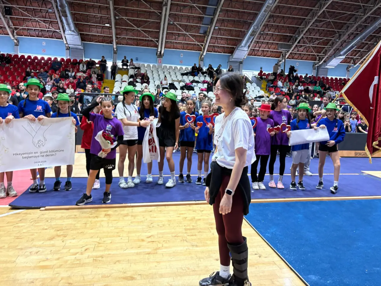 Manisa Cimnastik İl Temsilcisi Fatma Tuba Didin, böylesine anlamlı bir sürprizin şampiyona sırasında yaşanmasından büyük mutluluk duyduklarını ifade etti.