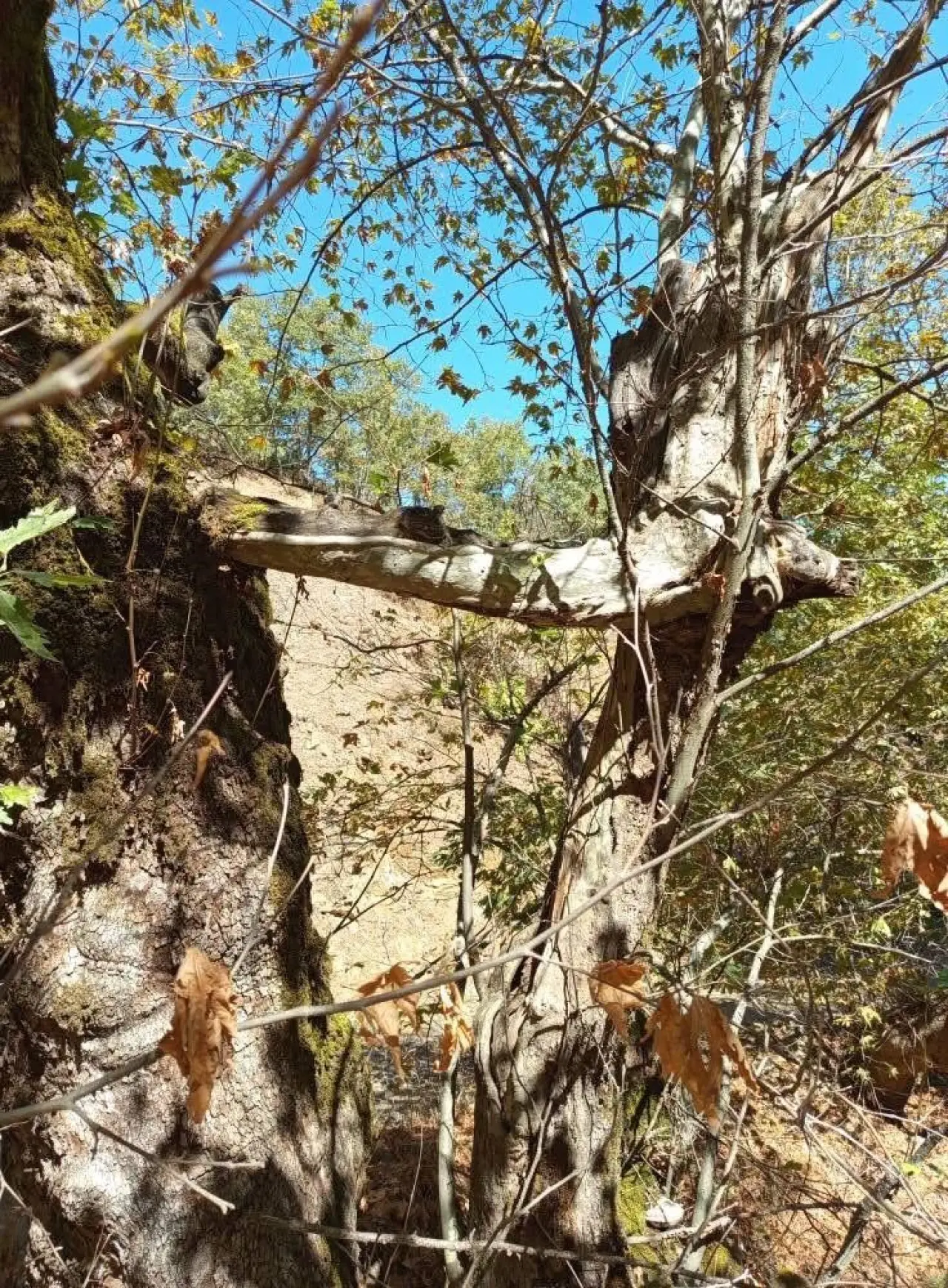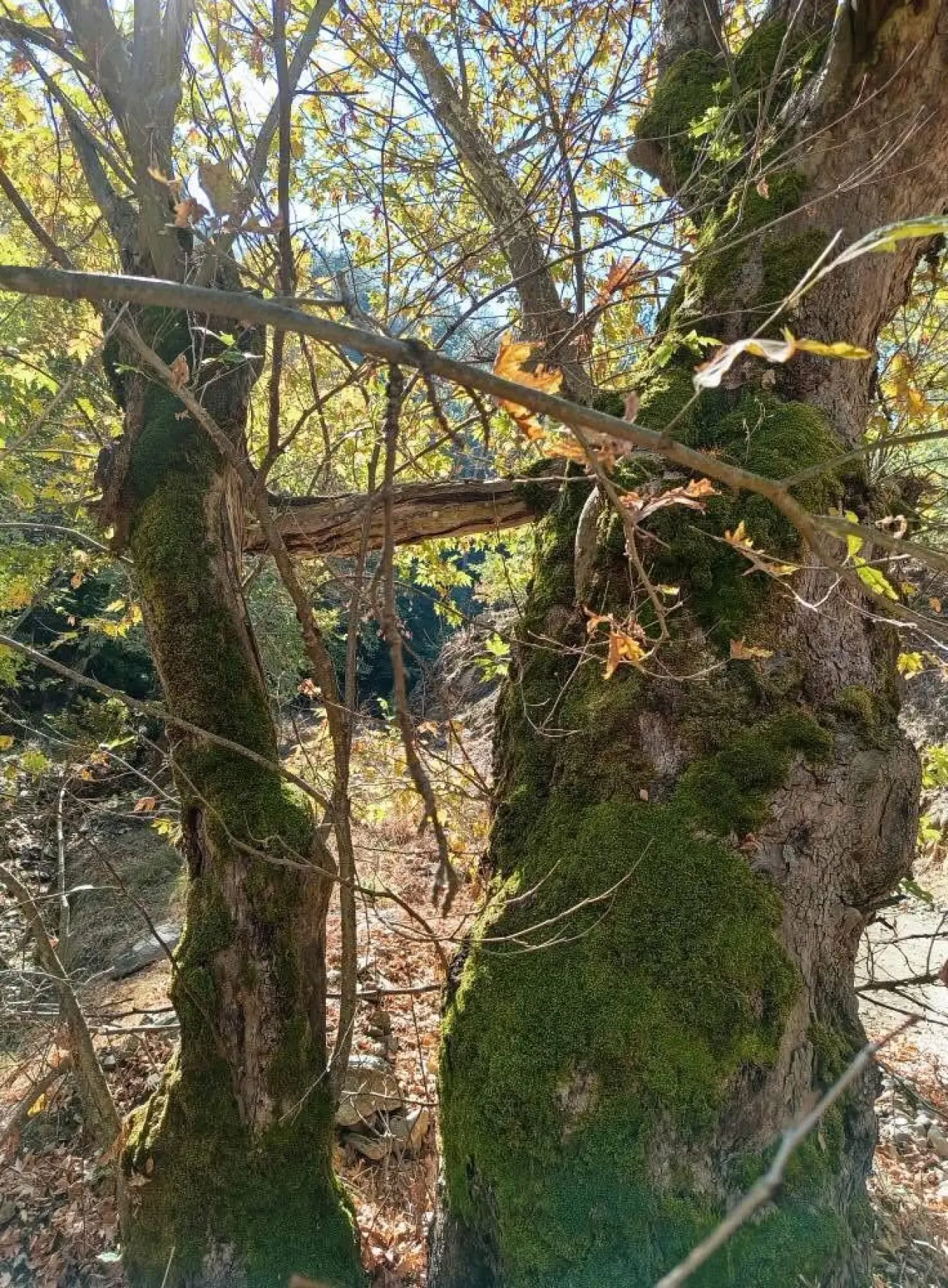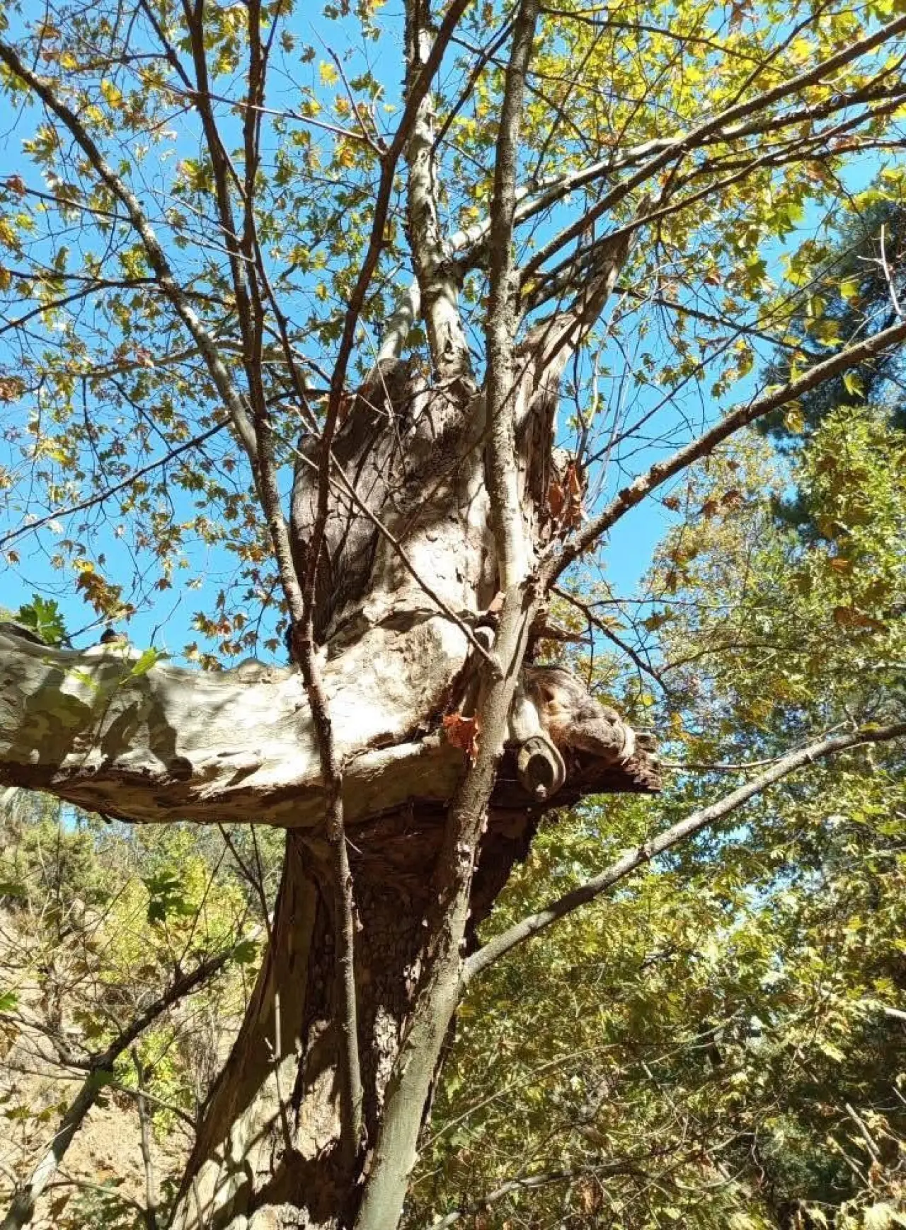 "Bugün ormana gezmeye gittim. Yan yana duran iki çınar dikkatimi çekti. Biri oldukça yaşlı, diğeri ise yaklaşık 15 yıllık olabilir. Küçük çınar devrilmesin diye büyük çınar adeta koluyla tutmuş gibiydi. Sanki evladını korur gibi sarılmıştı. Bu bana çok ilginç geldi. Doğanın ibretlik bir örneği olsa gerek."İHA