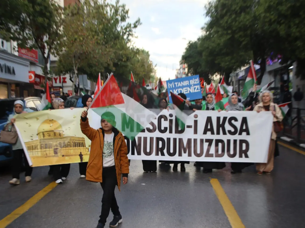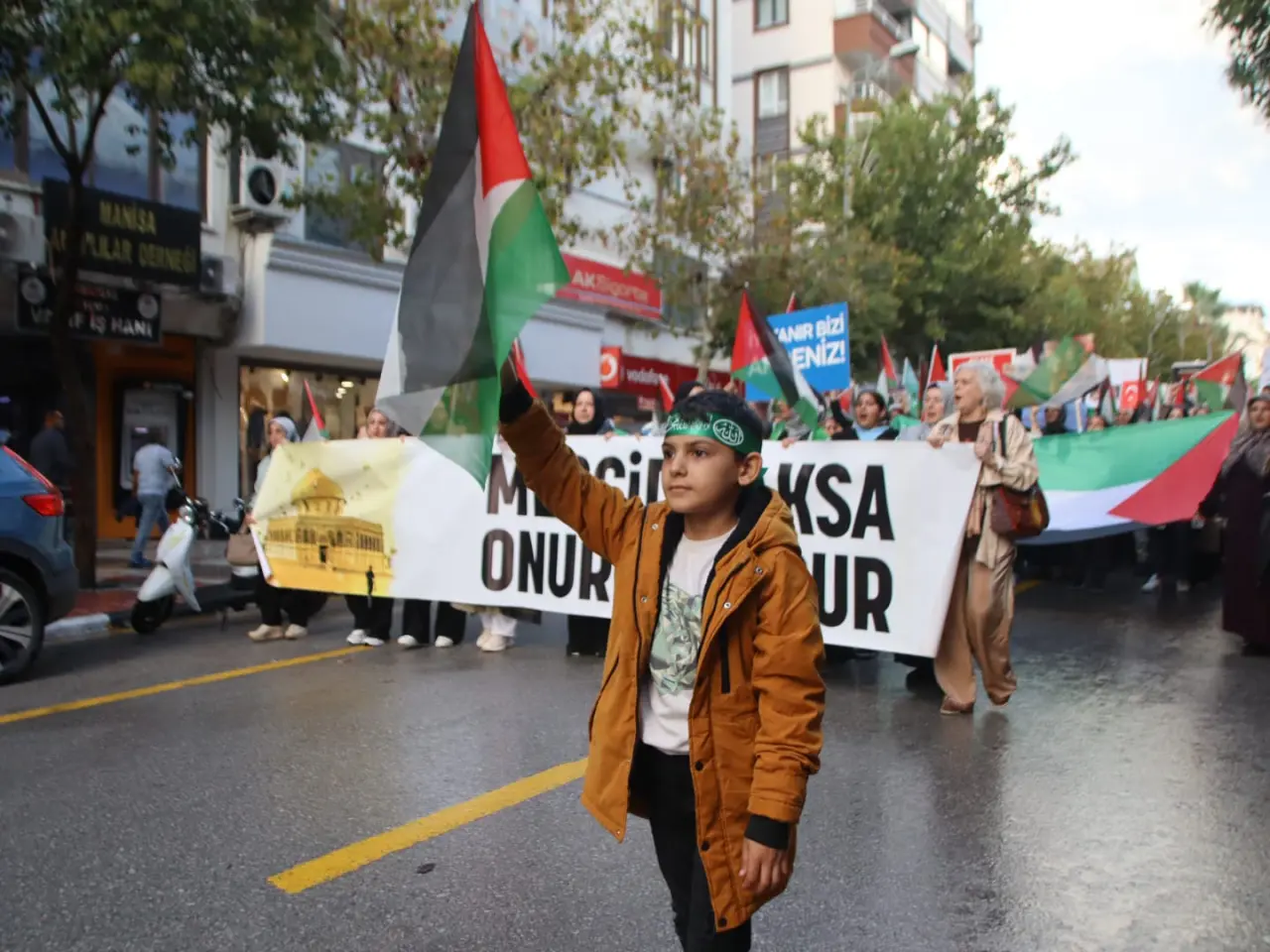 Filistin’e Destek Platformu Manisa Temsilciliği tarafından Aksa Tufanı’nın 2’nci yılı dolayısıyla “Gazze İçin Kararlılık Yürüyüşü” düzenlendi. Hatuniye Camii önünde toplanan kalabalık, 15 Temmuz Demokrasi Meydanı’na kadar tekbirlerle yürüdü. Yürüyüşte İsrail aleyhine sloganlar atılırken, Filistin halkına destek mesajları verildi. Yürüyüş programına, Filistin’e Destek Platformu Manisa Temsilcisi Muzaffer Yurttaş, İlim Yayma Cemiyeti Başkanı Recep Özgüvenç, sivil toplum kuruluşlarının temsilcileri ve çok sayıda Manisalı vatandaş katıldı.