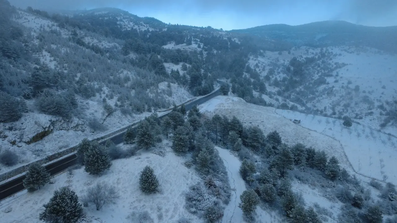 Gece saatlerinden itibaren etkisini artıran kar yağışıyla birlikte Manisa'nın Demirci ilçesindeki dağlar ve yollar beyaz örtüyle kaplandı. Kar yağışının ardından havadan görüntülenen Demirci Dağı ve çevresi, doğayla iç içe eşsiz görüntülere sahne oldu.