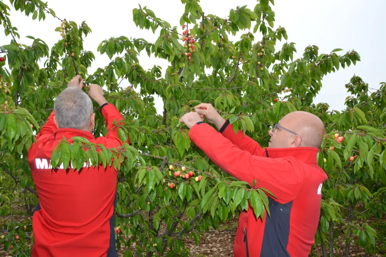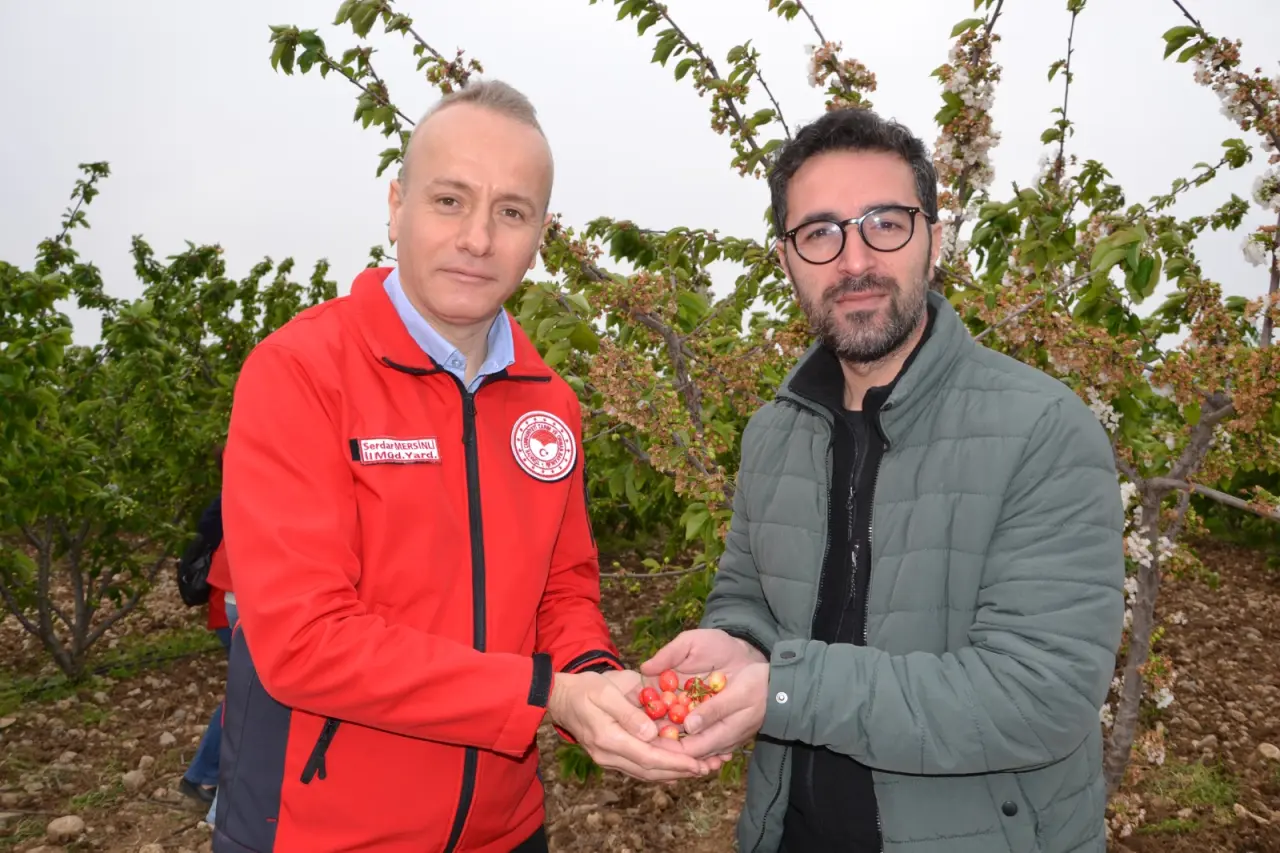 Sabahın erken saatlerinde kiraz üreticileri ile bir araya gelen Manisa İl Tarım ve Orman Müdür Yardımcısı Serdar Mersinli, Şehzadeler ilçe Tarım ve Orman Müdürü Gökmen Kaya, erkenci çeşit kirazların hasadını üreticilerle birlikte yaptı.
