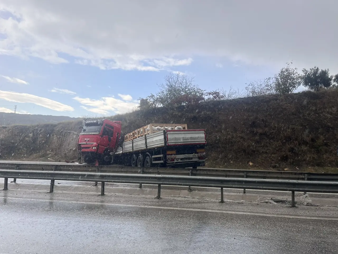 Kaza, saat 13.30 sıralarında D300 karayolu Kavacık Rampaları mevkiinde meydana geldi. Edinilen bilgiye göre, Engin Şensözlü yönetimindeki 06 AU 5893 plakalı tır, yağış nedeniyle kayganlaşan yolda sürücüsünün direksiyon hakimiyetini kaybetmesi sonucu makasladı. Tır sürücüsü şans eseri kazayı hafif yaralı olarak atlattı. Kazayı gören vatandaşların 112 Acil Çağrı Merkezi’ne bildirmeleri üzerine olay yerine itfaiye, ambulans, jandarma ve polis ekipleri sevk edildi. Yaralı tır sürücüsü olay yerinde yapılan ilk müdahalesinin ardından Kula Devlet Hastanesi’ne kaldırılırken hayati tehlikesinin bulunmadığı öğrenildi.