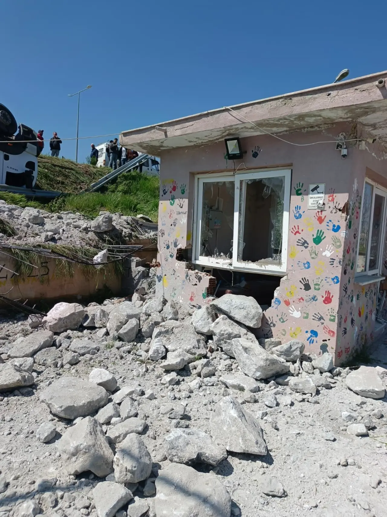 Kaza nedeniyle okulun güvenlik görevlisi odasında ve öğretmenlere ait park halindeki araçlarda maddi hasar oluştu.
