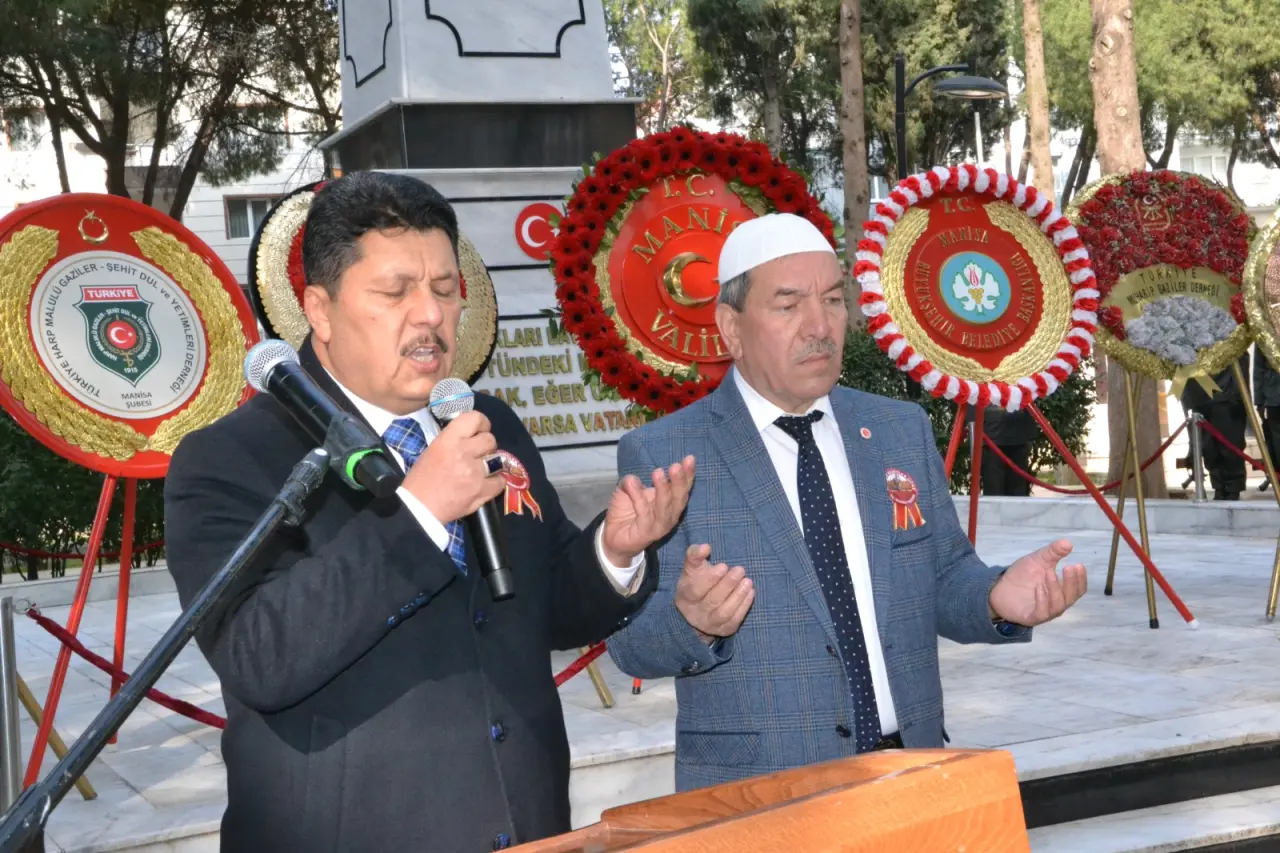 Günün anlam ve önemini belirten konuşmayı yapan Türkiye Harp Malulü Gaziler Şehit Dul ve Yetimleri Derneği Manisa Şube Başkanı Yusuf Kıyışkan,” Bugün burada yalnızca bir zaferi anmak için değil, bir milletin nasıl ayakta kaldığını hatırlamak için toplandık. Bugün 18 Mart… Bugün, Çanakkale’yi geçilmez kılan imanın, cesaretin ve fedakârlığın günüdür. Çanakkale sadece bir savaş değildir. Çanakkale bir milletin dirilişidir. Çanakkale, “Buradan öteye geçemezsiniz” diye tarihe vurulmuş bir mühürdür. Orada yalnızca toprak savunulmadı. Orada vatan savunuldu. Bayrak savunuldu. Ezan savunuldu. Milletin onuru savunuldu. Düşman gemiyle geldi, topla geldi, silahla geldi, kibirle geldi. Ama karşısında ölümü korku değil, şeref bilen bir millet buldu. Onlar güçlerine güvendi. Biz imanımıza güvendik. Onlar hesabına güvendi. Biz yüreğimize güvendik. Onlar geçeceklerini sandı. Biz vatan için ölmeyi göze aldık. Ve sonunda tarih şunu yazdı: Çanakkale, çeliğin değil, imanın zaferidir. Çanakkale’yi anlamak sadece cepheye bakmak değildir. Çanakkale’yi anlamak, evladını cepheye uğurlayan anneyi anlamaktır. İçine ağlayan babayı anlamaktır. Yetim kalan evladı anlamaktır. Dönmeyeceğini bile bile “Vatan sağ olsun” diyen yüreği anlamaktır. İşte bu yüzden şehitlik sıradan bir ölüm değildir. Şehitlik, bir canın bir millete ömür olmasıdır. Şehit yalnız toprağa düşmez; milletin kalbine emanet olur. Gazilik de sıradan bir unvan değildir. Gazilik, vatan için bedel ödemenin adıdır. Ömür boyu o emaneti taşımanın adıdır. Bir gazi yalnız kendi yarasını taşımaz; şehidinin hatırasını taşır, milletinin hafızasını taşır. Ben bugün burada yalnızca bir dernek başkanı olarak değil, aynı zamanda bir gazi olarak konuşuyorum. Şunu yürekten söylüyorum: Biz gaziler için en büyük şeref, şehitlerimize sadık kalabilmektir. Çünkü biz biliriz ki; şehitler bu milletin zirvesidir, gaziler ise o zirvenin emanetçileridir. Aziz şehit ailelerimiz Sizler bu milletin baş tacısınız. Sizler sabırla ayakta duran, acısını içine gömen ama vakur duruşundan vazgeçmeyen yüce insanlarsınız. Şunu açıkça ifade etmek isterim: Şehitlerimizin emanetleri yalnız değildir. Çünkü o emanet hepimizin emanetidir. Kahraman Gazilerimiz, Sizler bu milletin yaşayan şerefisiniz. Taşıdığınız izler bu milletin haysiyet nişanesidir. Buradan bir de değerli gençlerimize seslenmek istiyorum: Bugün sizden beklenen sadece duygulanmanız değildir. Asıl mesele anlamanızdır. Bu vatanın nasıl vatan olduğunu anlamanızdır. Bu bayrağın neden bu kadar kutsal olduğunu anlamanızdır. Çünkü vatan sadece üzerinde yaşadığımız yer değildir; vatan uğruna can verilen yerdir. Gördesli Makbule, Parti Pehlivan Sarı Mehmet Efe’nin şehri Manisa da bu büyük destanın içindedir. Bu kadim şehir yalnızca bereketiyle değil; vatanına bağlılığıyla, vakarıyla ve fedakârlığıyla da büyük bir şehirdir. Saruhan diyarının yiğit evlatları da Çanakkale’de bu milletin kaderine omuz vermiştir. Bu yüzden şehitlik ve gazilik Manisa’da daha derinden hissedilir. Çünkü bu şehir yalnızca zaferi değil, o zaferin bedelini de bilen bir şehirdir. Bugün burada yaptığımız anma sadece bir tören değildir. Bu aynı zamanda bir sözdür. Şehitlerimize sözümüzdür, gazilerimize vefamızdır, gençlerimize bıraktığımız hafızadır. Çanakkale bize şunu öğretmiştir: Ayrı düşersek zayıflarız. Bir olursak aşılmaz oluruz. Bize düşen yalnızca anmak değildir. Bize düşen o ruhu yaşatmaktır. Birliğimizi yaşatmak, beraberliğimizi yaşatmak, şehitlerimizin emanetine sahip çıkmaktır. Bu duygu ve düşüncelerle, başta Gazi Mustafa Kemal Atatürk ve silah arkadaşları olmak üzere, Çanakkale’yi geçilmez kılan bütün kahramanlarımızı, vatan uğruna can veren bütün aziz şehitlerimizi, ebediyete irtihal etmiş kahraman gazilerimizi rahmetle, minnetle ve şükranla anıyorum. Ruhları şad olsun, makamları âli olsun” dedi.