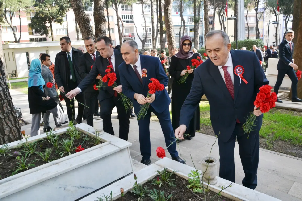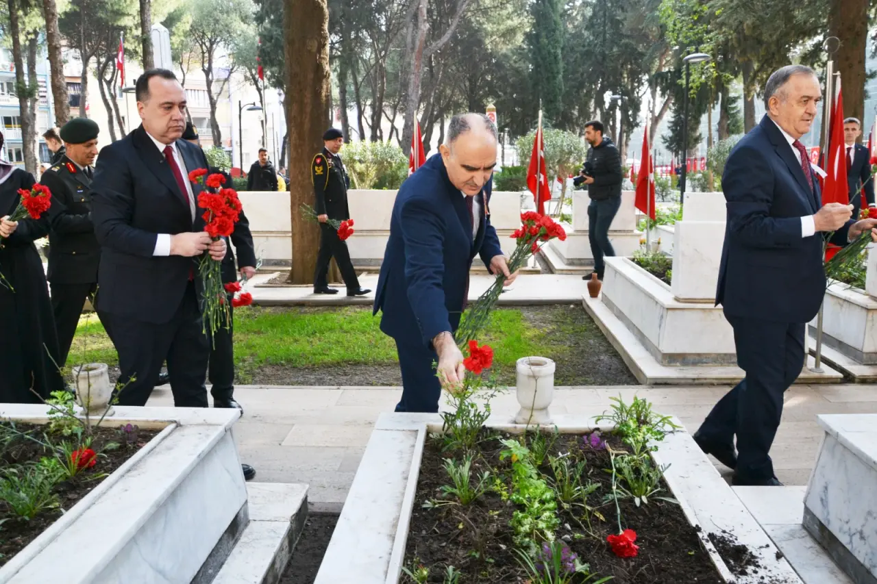 Manisa Valisi Vahdettin Özkan tarafından şehitlik defteri imzalandı. Vali Özkan, “18 Mart Şehitleri Anma ve Çanakkale zaferinin yıl dönümünde milletimizin bağımsızlığı ve birliği ile ay yıldızı bayrağımızın ebediyen dalgalanmasını uğruna canlarını feda eden siz kahraman şehitlerimizi rahmet, minnet ve şükranla anıyoruz. Tarihimizin her safhasında yazılan kahramanlık destanları vatanını canı pahasına savunan aziz ecdadımızın sarsılmaz iradesinin en güçlü nişanesidir. Sizlerin gösterdiği cesaret ve fedakarlık milletimizin hafızasında daima canlı kalacak ve gelecek nesillere ilham kaynağı olmaya devam edecektir. Başkomutan Gazi Mustafa Kemal Atatürk'ün ifade ettiği gibi vatan sevgisi ve sarsılmaz inanç bir milletin en güçlü kalesidir. Sizlerin canı pasına sergilediği bu yüce ruh sayesinde bu topraklar bizlere ebedi vatan olmuş. Türk milleti bağımsızlık karakterinden asla taviz vermeyeceğini tüm dünyaya ilan etmiştir. Milletimiz hürriyet ve bağımsızlık uğruna canlarını feda eden kahraman şehitlerini daima hatırlamış ve hatırlamaya devam edecek. Aziz şehitlerimiz ulaştığınız en yüce mertebede milletimizin gönlünde ebediyen yaşayacaksınız. Bu duygu ve düşüncelerle başta Gazi Mustafa Kemal Atatürk ve silah arkadaşları olmak üzere vatan uğruna şehadet şerbetini içen tüm aziz şehitlerimizi rahmetle anıyor kahraman gazilerimize şükranlarımızı sunuyoruz. Ruhunuz şad makamınız cenneti ala olsun” diye konuştu. Hatuniye Camii İmam Hatibi Hayrettin Çoban tarafından Kur’an-ı Kerim tilaveti okundu, Şehzadeler İlçe Müftüsü İsmail Temur tarafından dua edildi. Vali Özkan ve protokol üyeleri şehitliğe karanfil bıraktı.