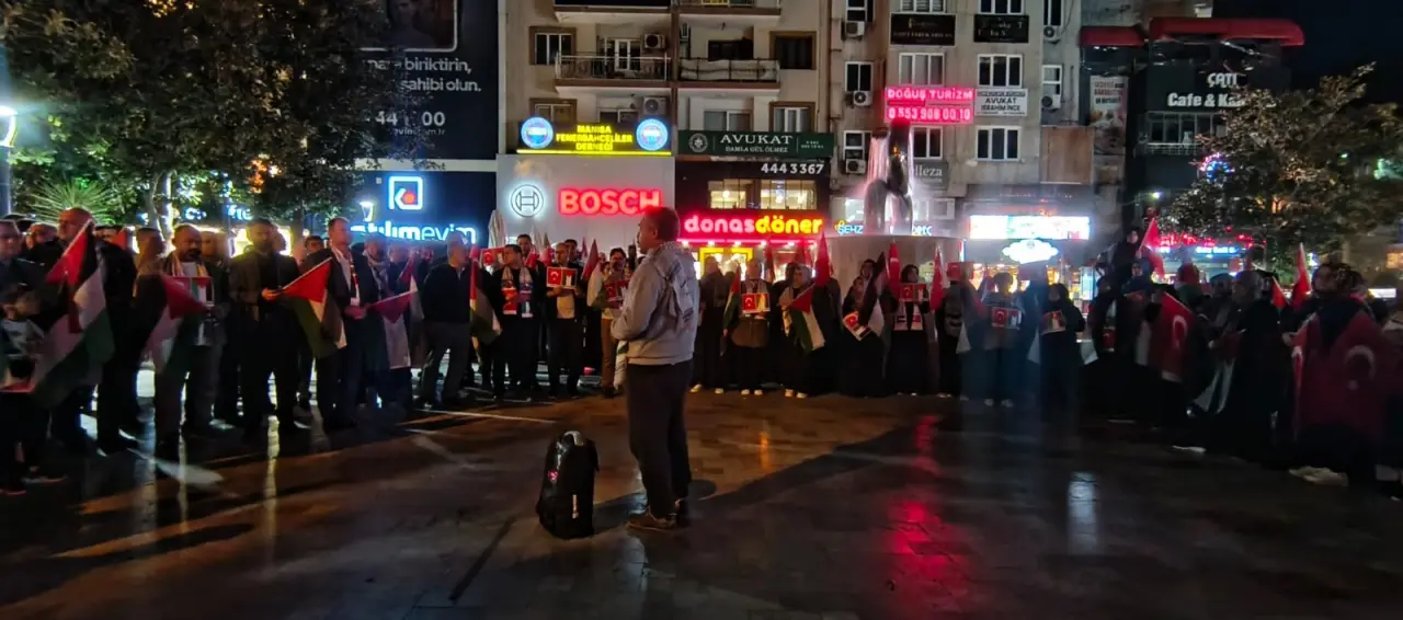 Manisa 15 Temmuz Demokrasi Meydanı, bugün sivil toplum kuruluşları ve siyasi partilerin ortak tepkisine sahne oldu. İsrail’in Gazze’ye insani yardım ulaştırmak üzere yola çıkan Sumud Filosu’na uluslararası sularda yaptığı saldırı, yüzlerce kişinin katıldığı gösteriyle protesto edildi. Meydanda açılan pankartlar ve atılan sloganlarla İsrail kınanırken, katılımcılar Filistin halkıyla dayanışma mesajı verdi.